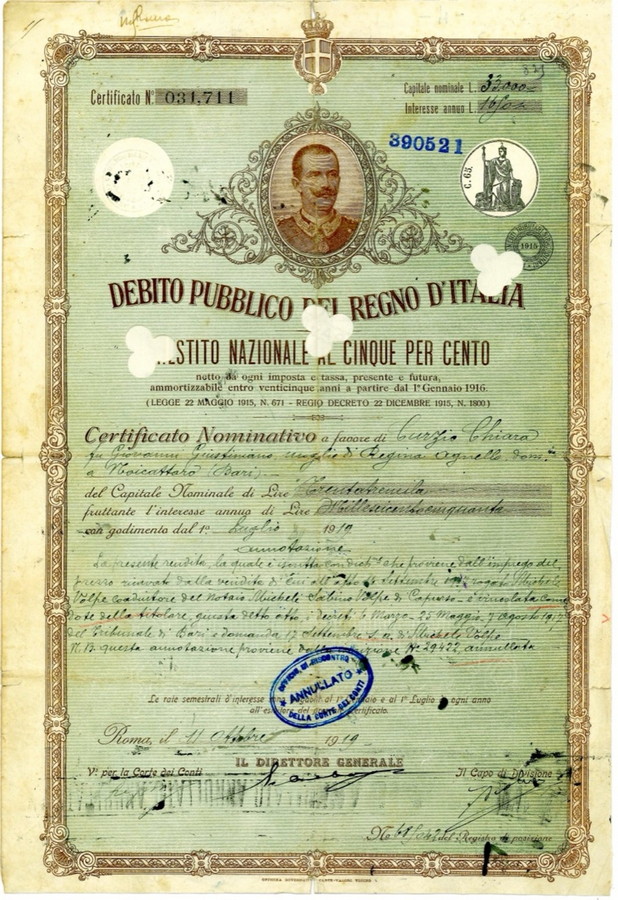Lotto 331 | - 1916 - DEB. PUBBLICO REGNO D'ITALIA PRESTITO NAZIONALE 5% - ROMA.
