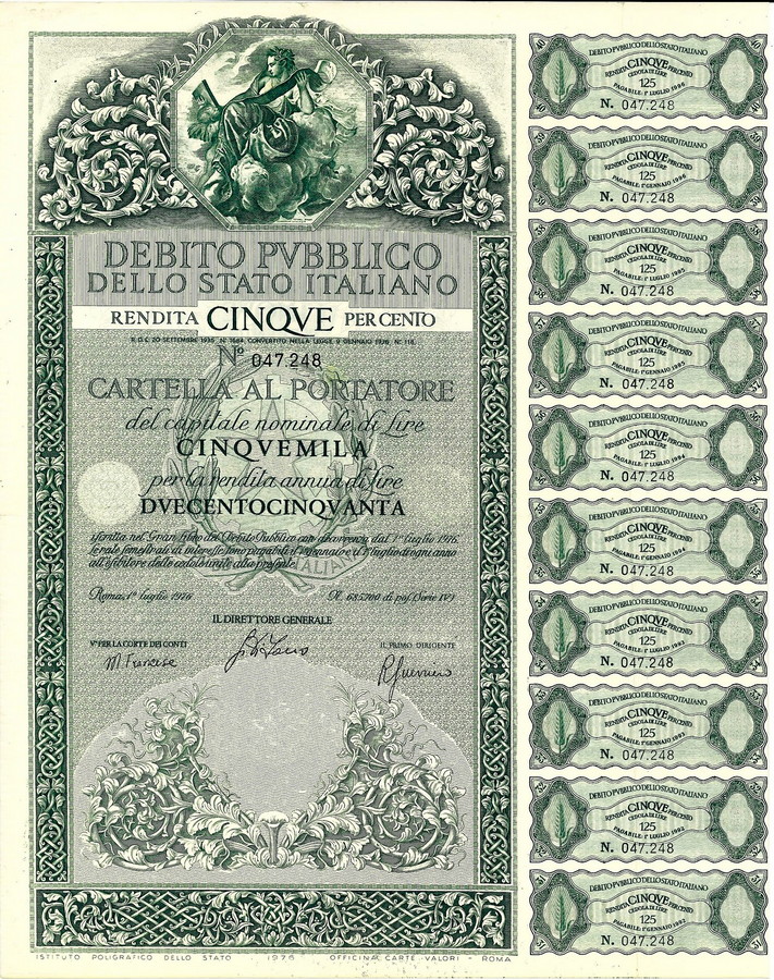 - 1976 - CARTELLA 5000 LIRE NON ANNULLATA - DEB. STATO ITALIANO - ROMA.