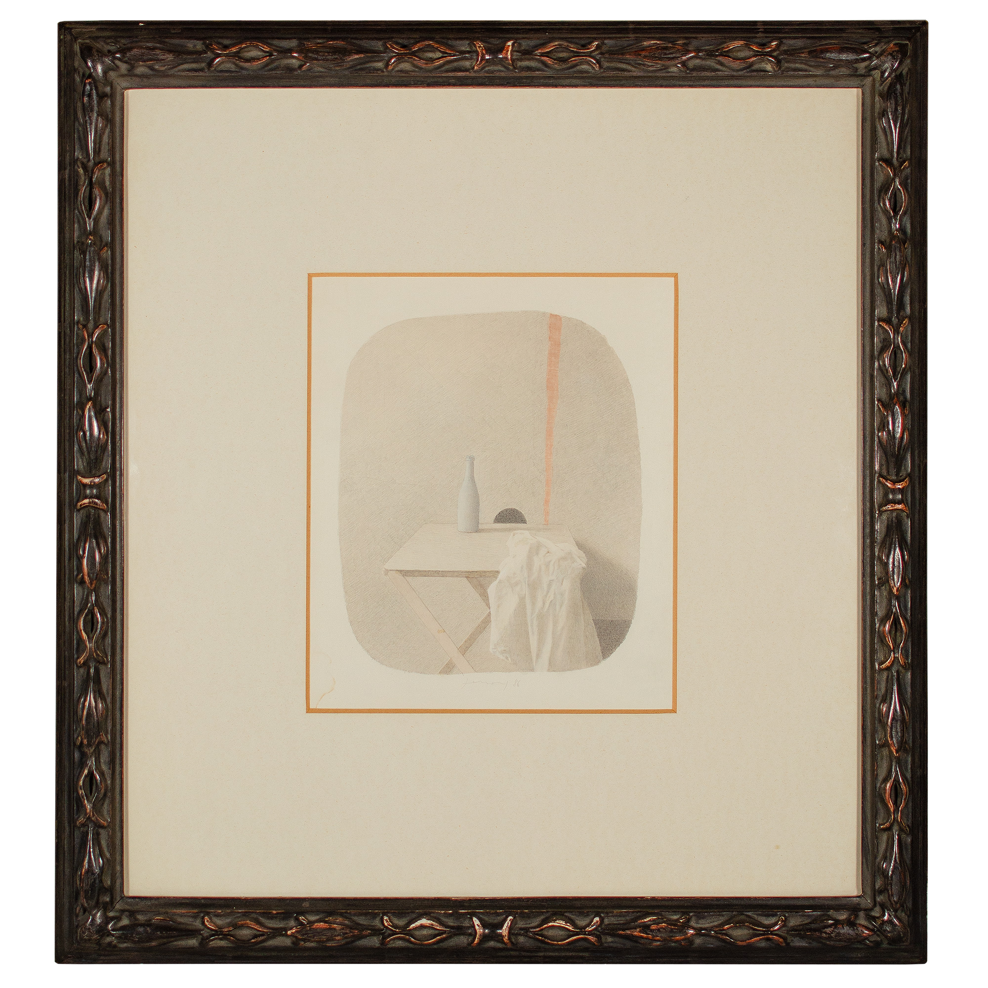 Datato e titolato al verso: “Bottiglia e panneggio”, 1986