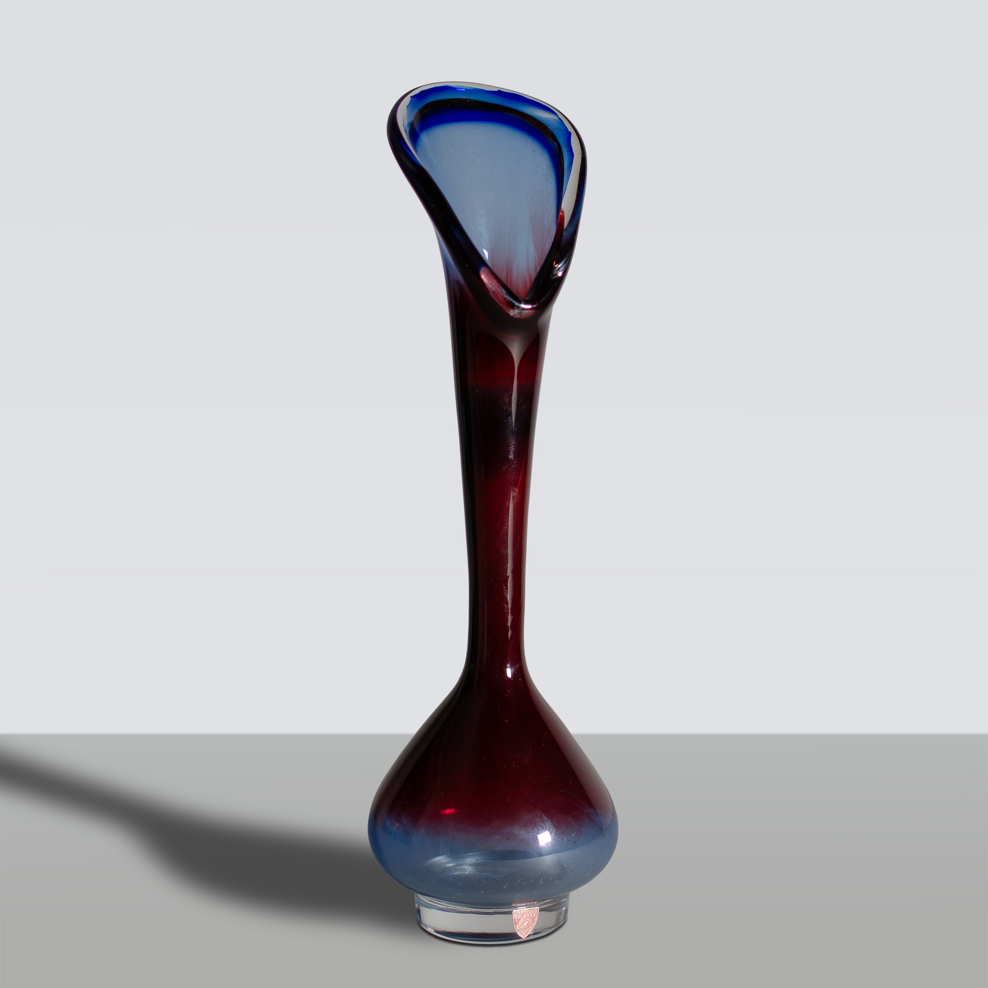 Vaso “Tan’si” a bulbo in vetro nei toni dell’ametista e dell’azzurro, altezza cm 34. Reca vecchia etichetta: Orrefors Sweden
