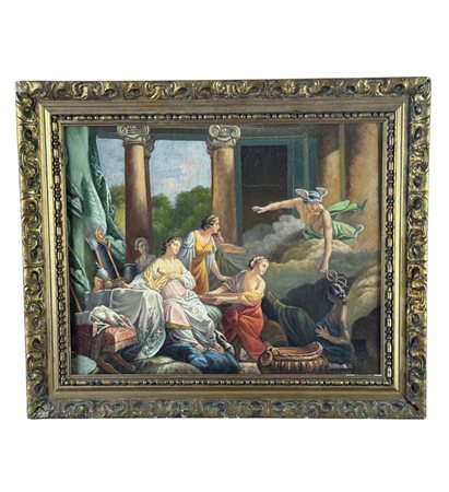 Dipinto olio su tela, periodo primi anni del XX secolo, scuola Italiana, raffigurante Scena con personaggi. Di isipirazione classica. Dimensioni compreso cornice: 62x52 cm. Dimensioni interno cornice: 50x41 cm. Artista anonimo. Opera in buone condizioni con lievi segni di vissuto come da foto allegate.