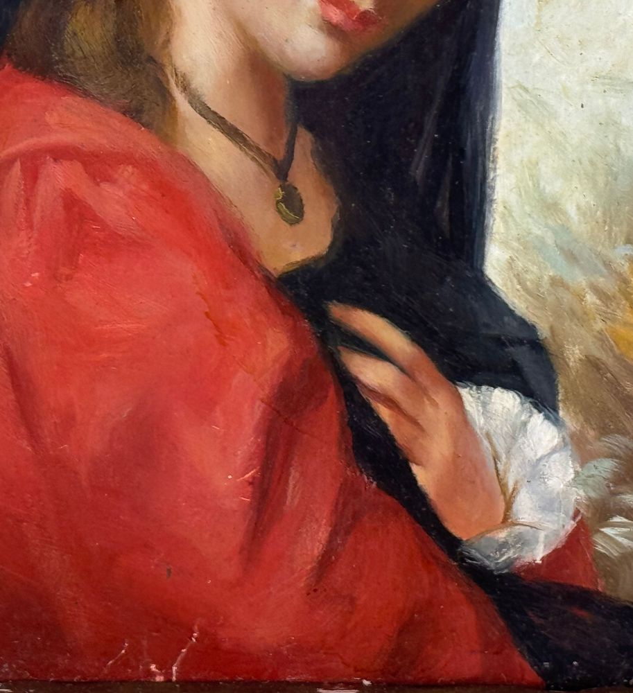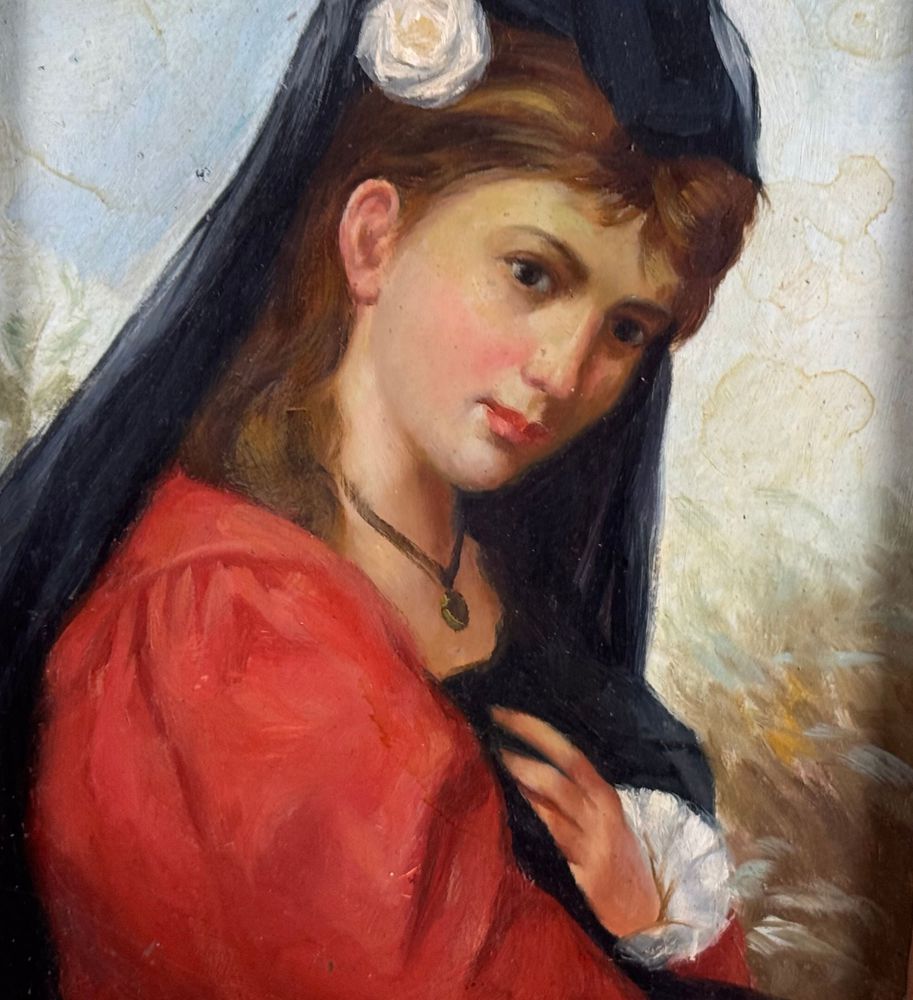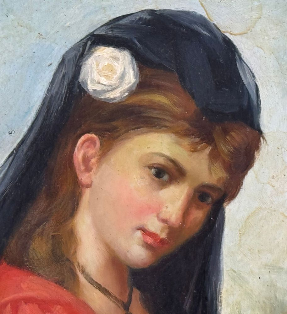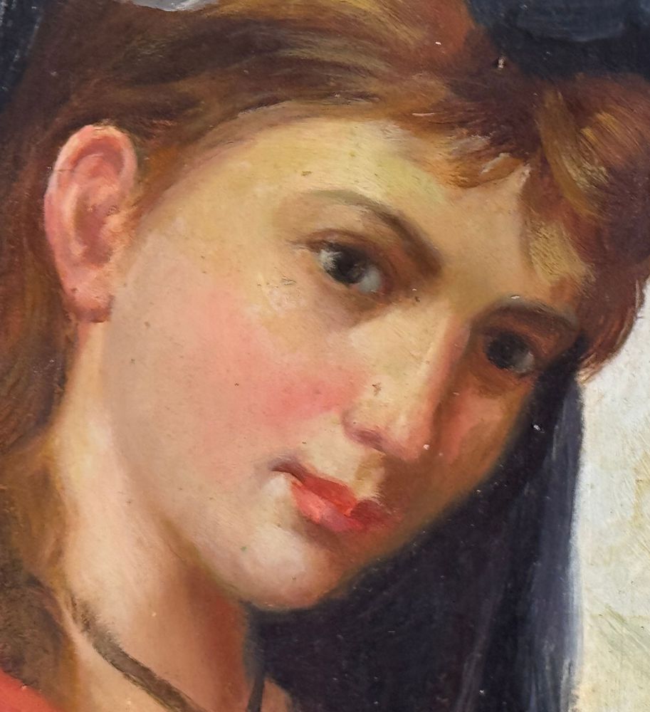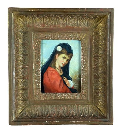 Dipinto olio su tavola, periodo XIX/XX secolo scuola Italiana, raffigurante Ritratto di donna con velo. Dimensioni compreso cornice: 30,5x34 cm. Dimensioni interno cornice: 12x17 cm. Da artista anonimo. Opera in buone condizioni.