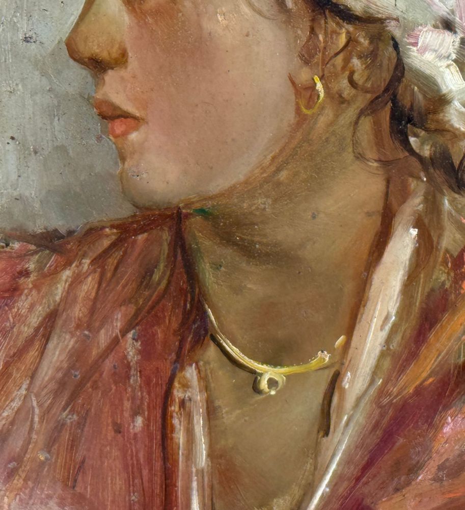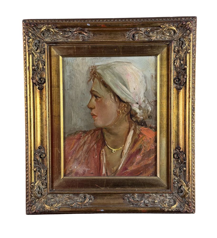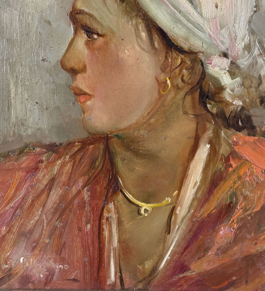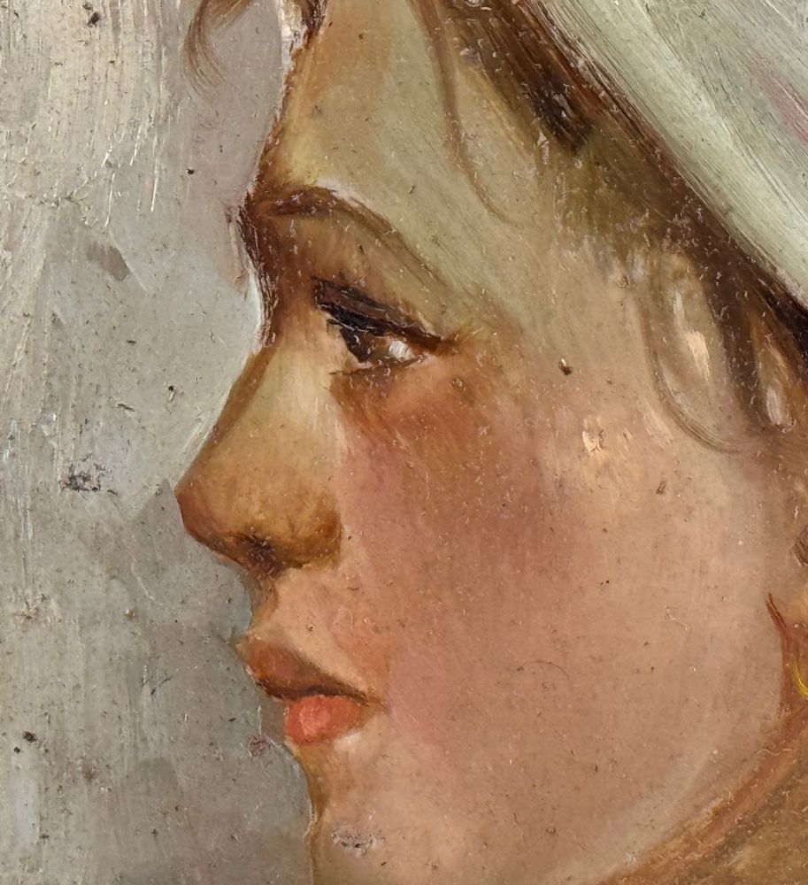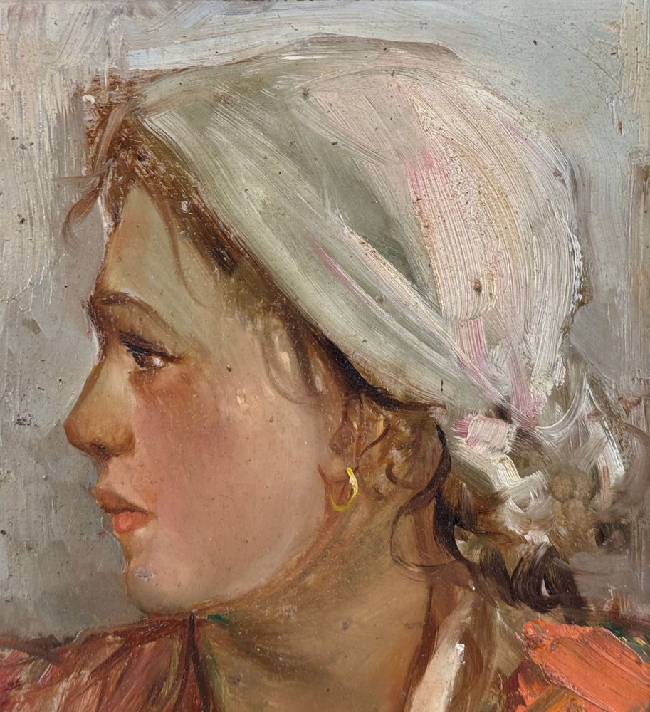 Dipinto olio su pannello, periodo XX secolo scuola Italiana, raffigurante Profilo di popolana. Dimensioni compreso cornice: 41x47 cm. Dimensioni interno cornice: 24x30 cm. Da artista anonimo. Opera in buone condizioni.