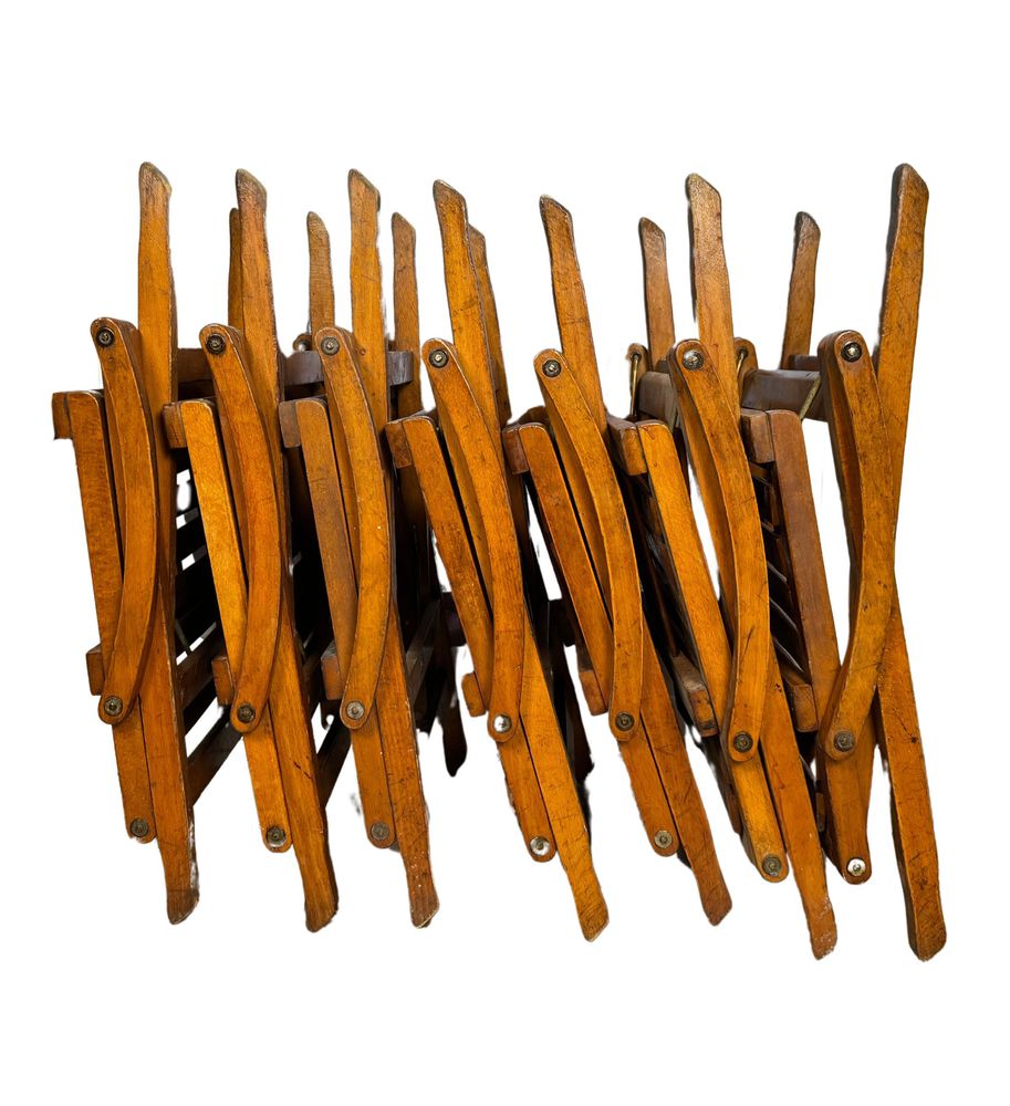 Lotto di sette sedie di Brevetti Reguitti, periodo XX secolo. Dimensioni: 80x43x41 cm. Marchio sul retro. Lotto in buone condizioni.
