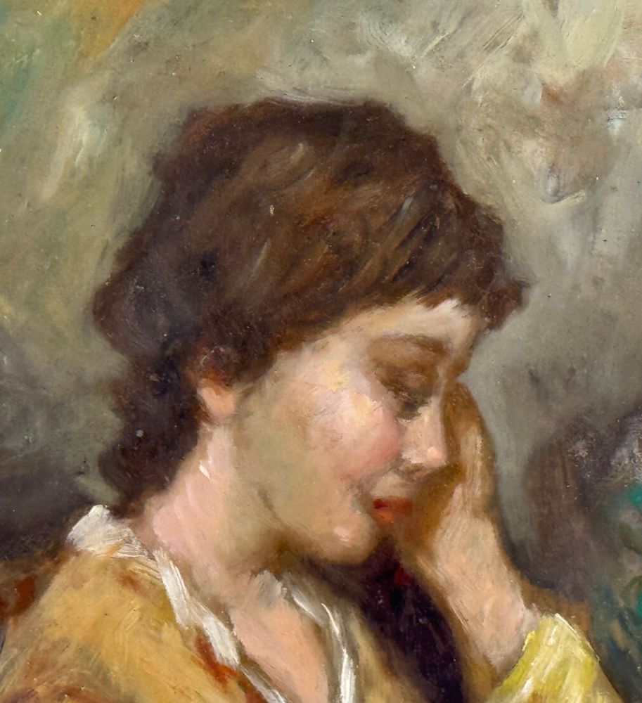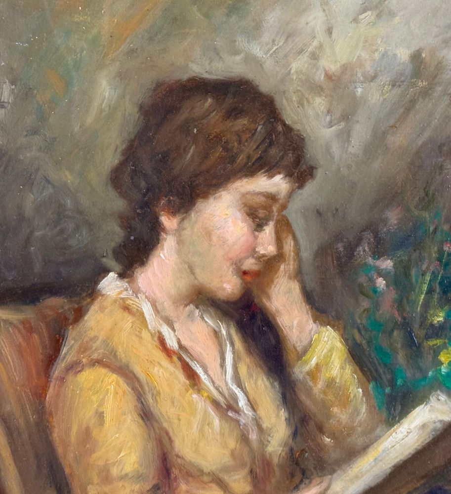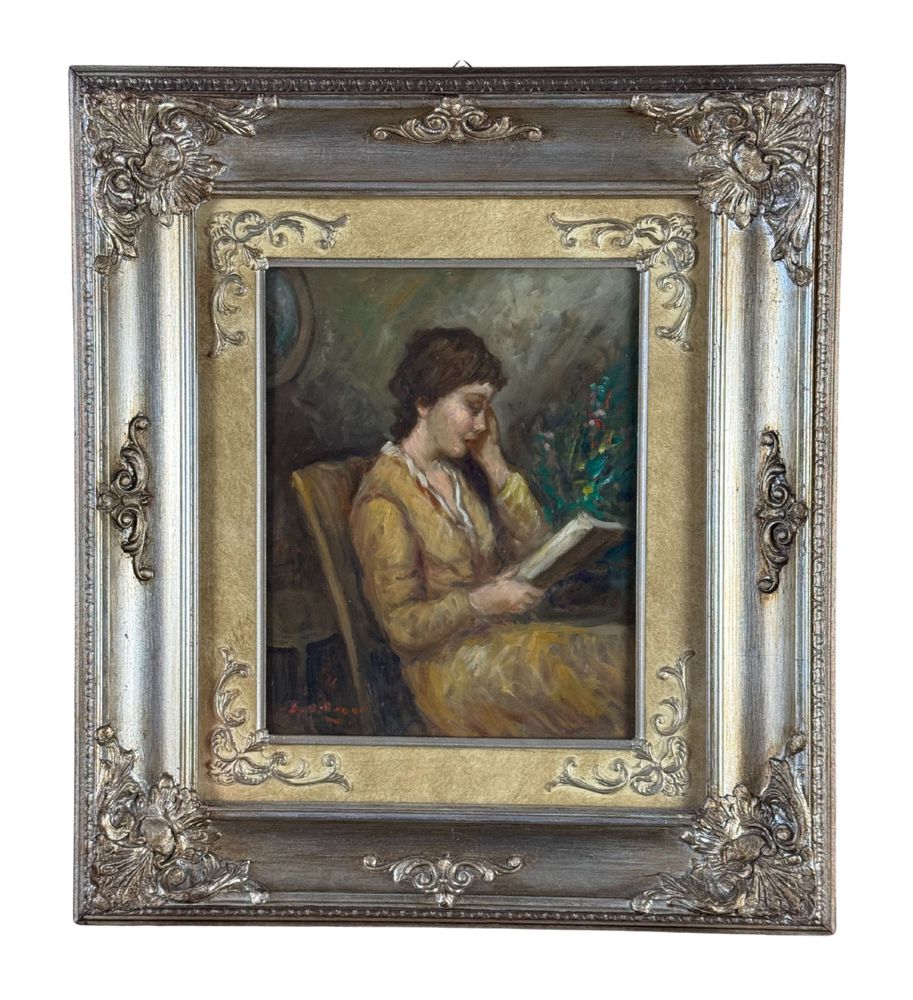 Dipinto olio su tavola, periodo XX secolo scuola Italiana, raffigurante Donna in lettura. Dimensioni compreso cornice: 47x53 cm. Dimensioni interno cornice: 24x30 cm. Reca firma in basso a sinistra L. Di Rocco. Opera in buone condizioni.