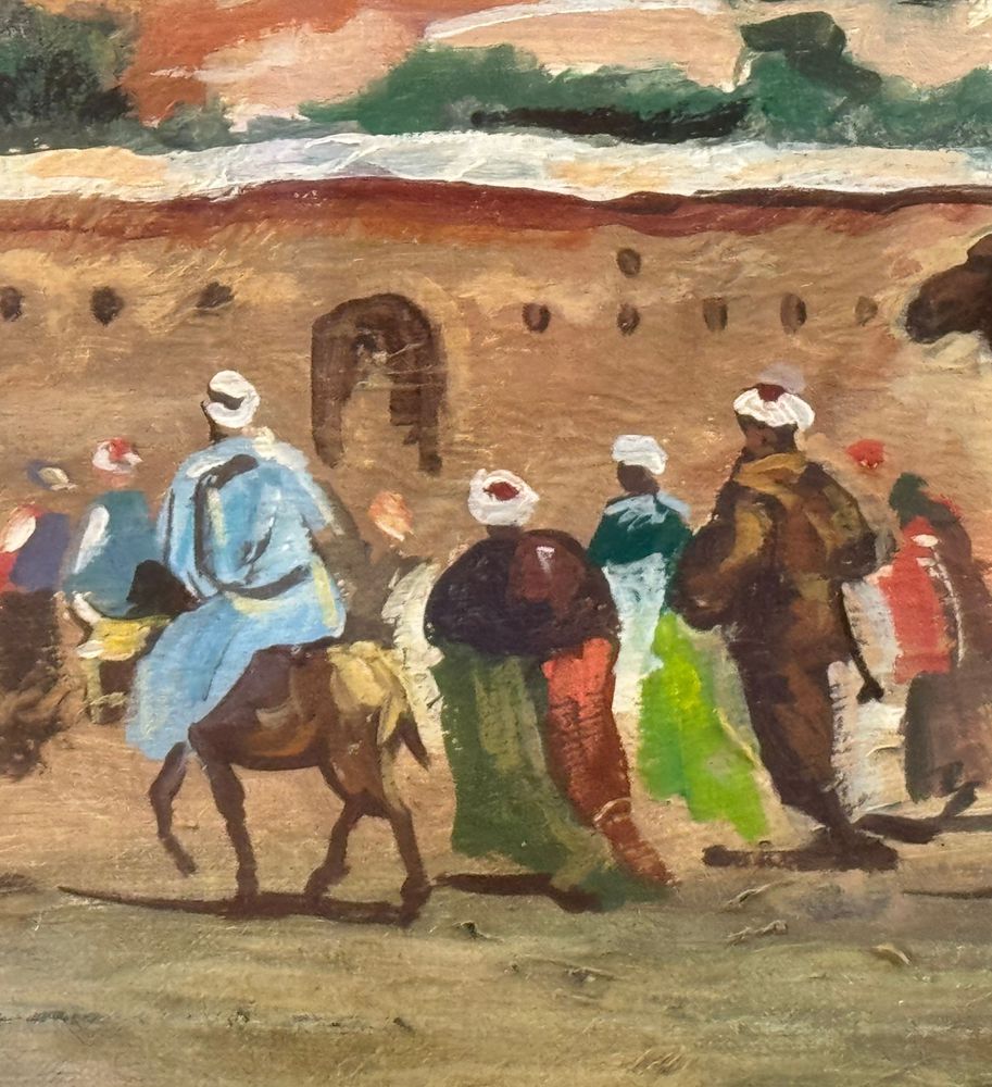 Dipinto olio su tela, periodo prima metà del XX secolo scuola Europea, raffigurante Strada con personaggi a Istanbul. Dimensioni compreso cornice: 94x71 cm. Dimensioni interno cornice: 75x50 cm. Reca firma in basso a destra da artista non identificato. Opera in buone condizioni.