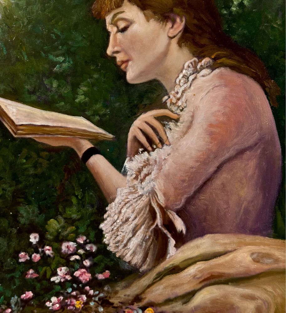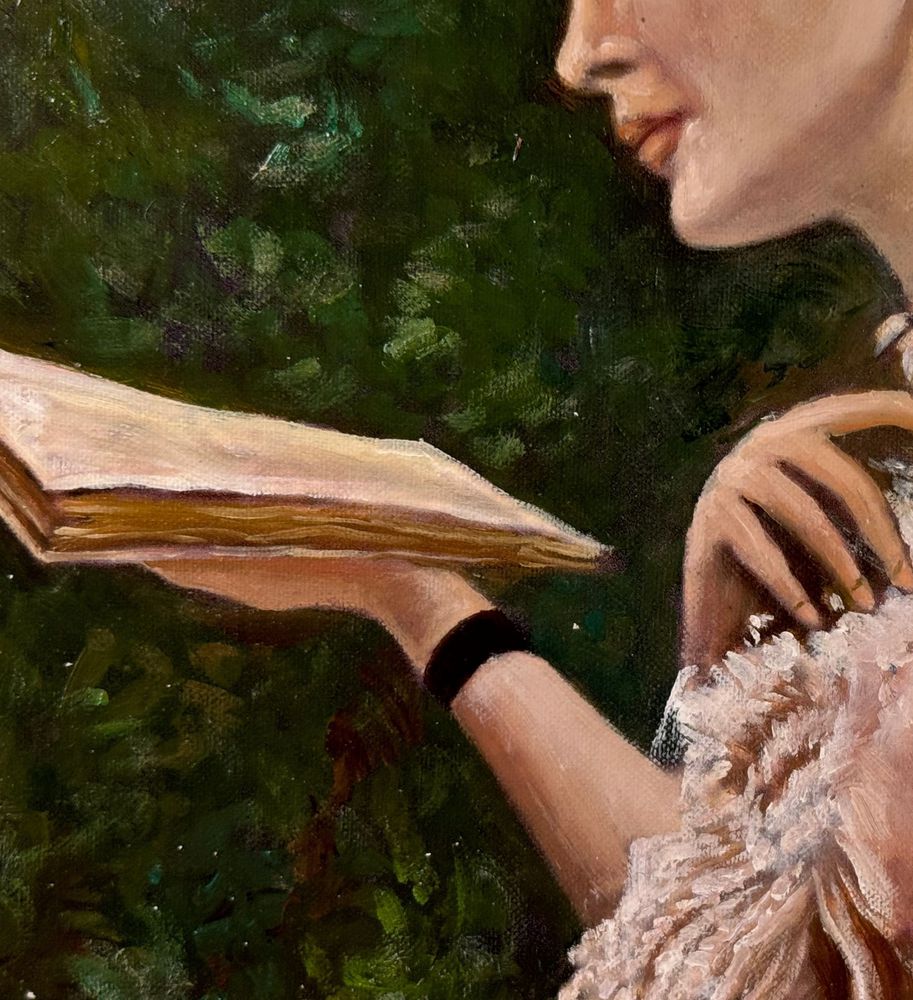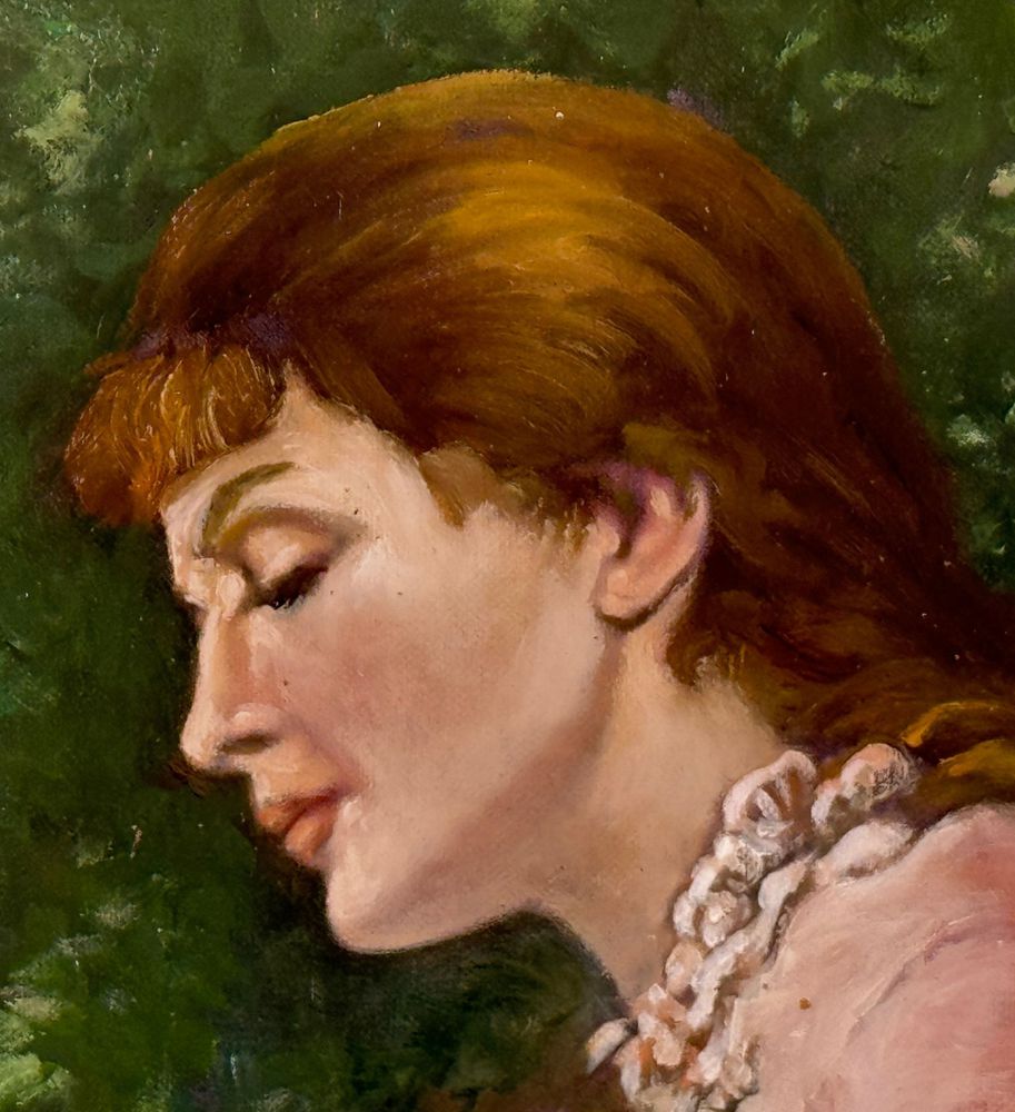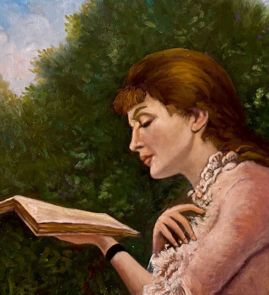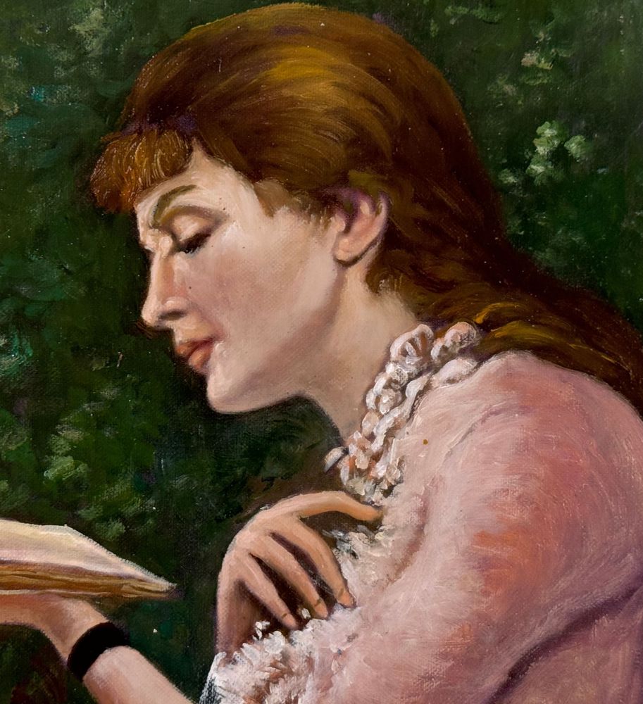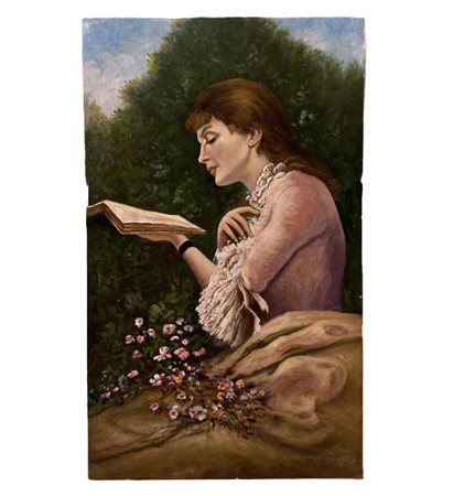 Dipinto olio su cartoncino telato, periodo XX secolo scuola Italiana, raffigurante Donna in lettura. Dimensioni:30x50 cm. Da artista anonimo. Opera in buone condizioni..