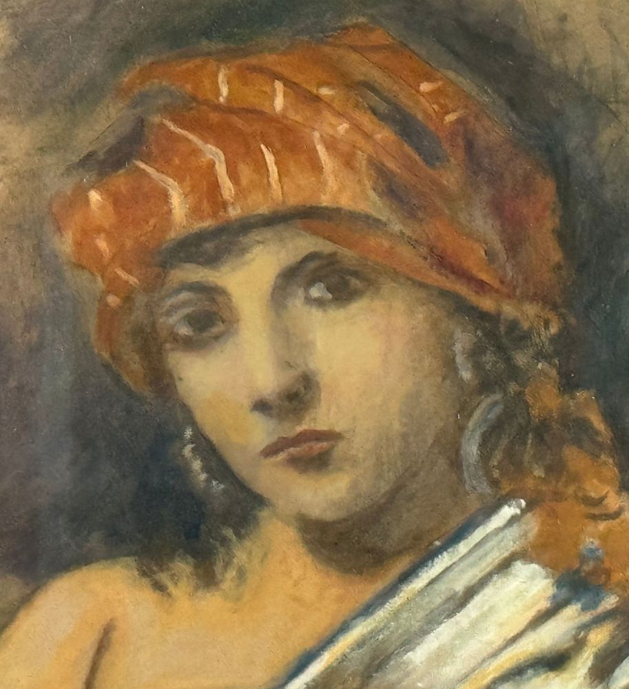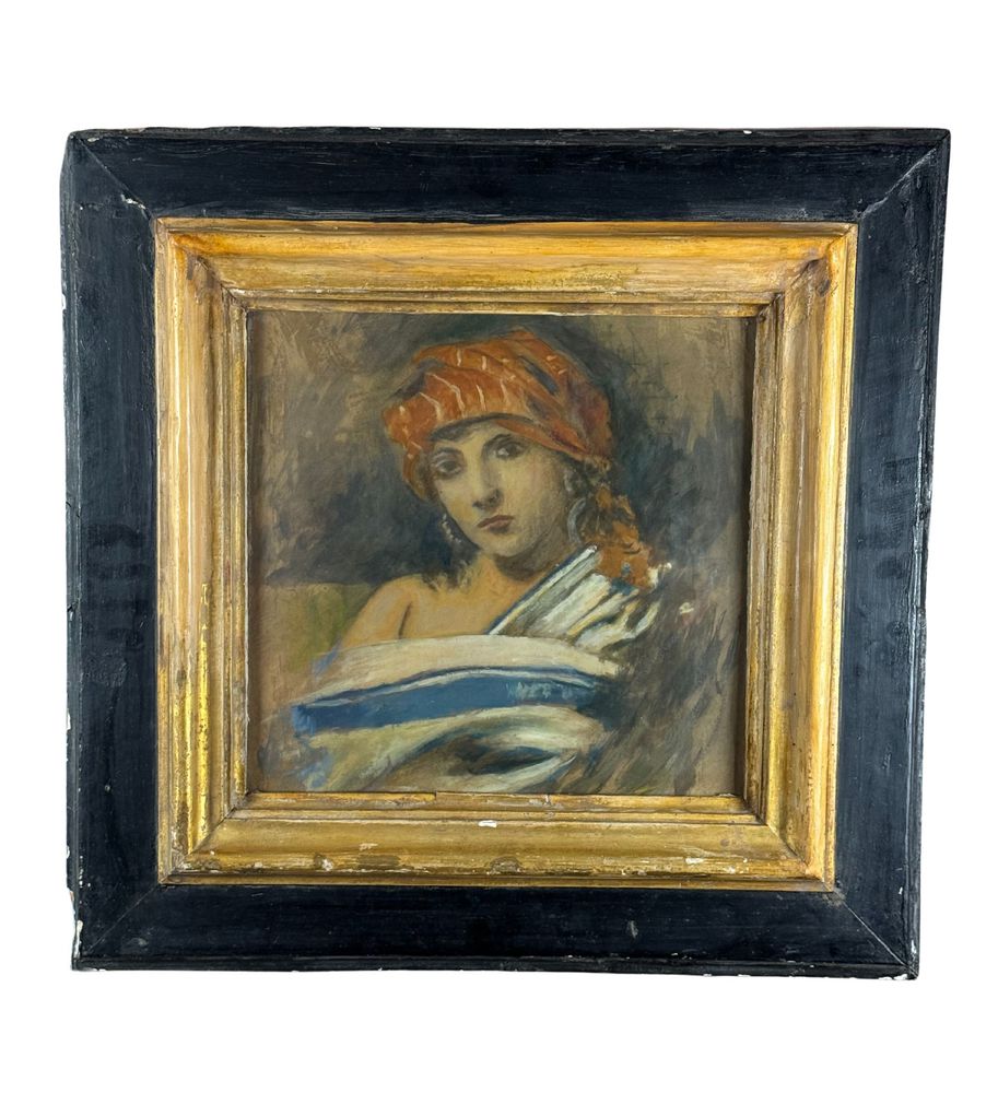 Dipinto olio su cartoncino, periodo XX secolo scuola Italiana, raffigurante Figura femminile di area orientalista. Dimensioni compreso cornice: 70x69 cm. Dimensioni interno cornice: 42x43 cm. Da artista anonimo. Opera in ottime condizioni. Cornice da restaurare.