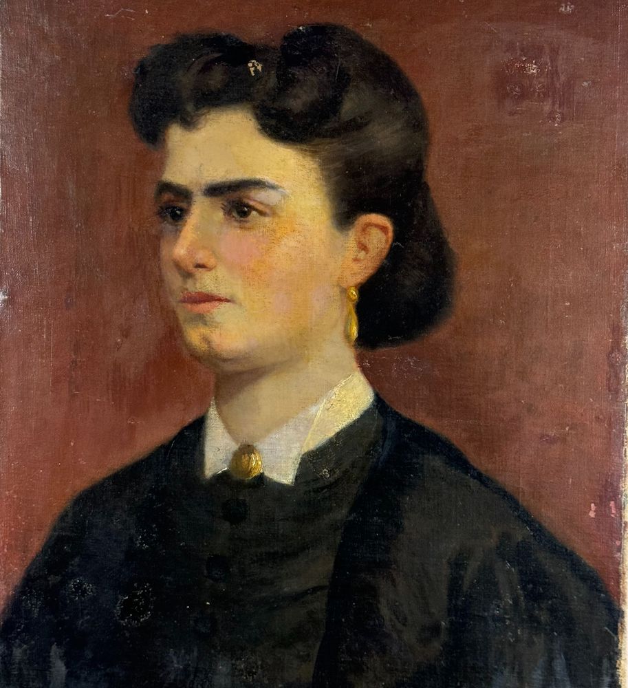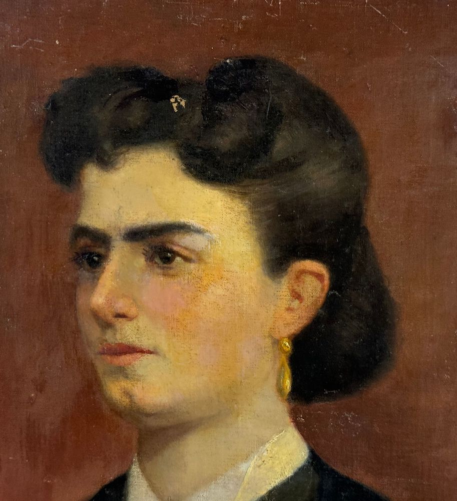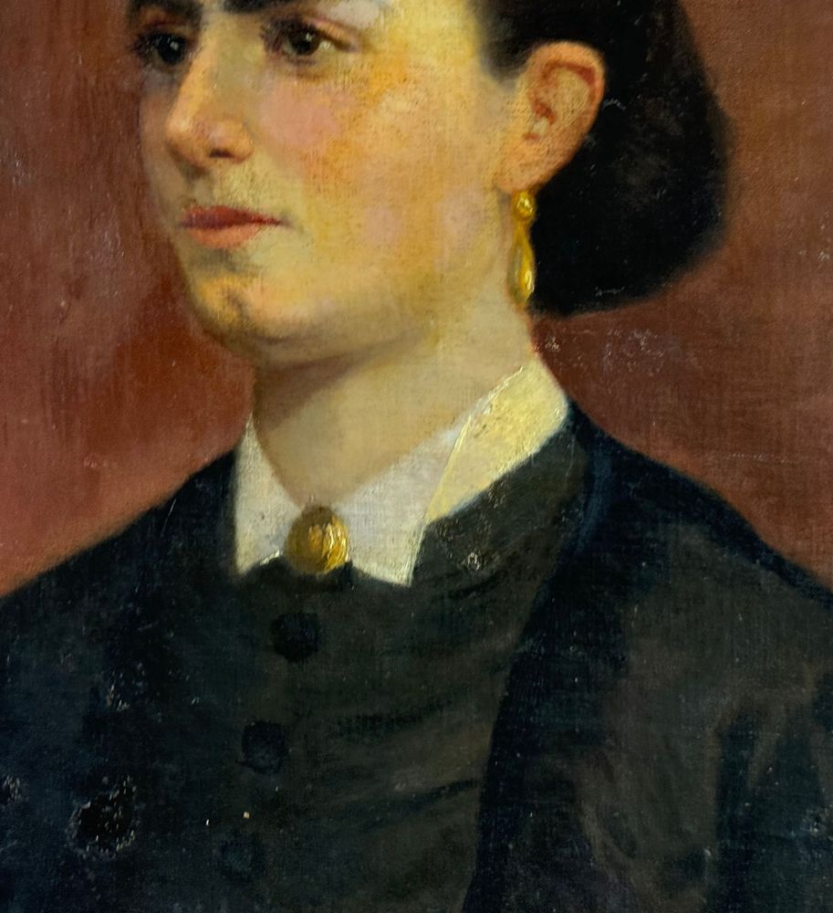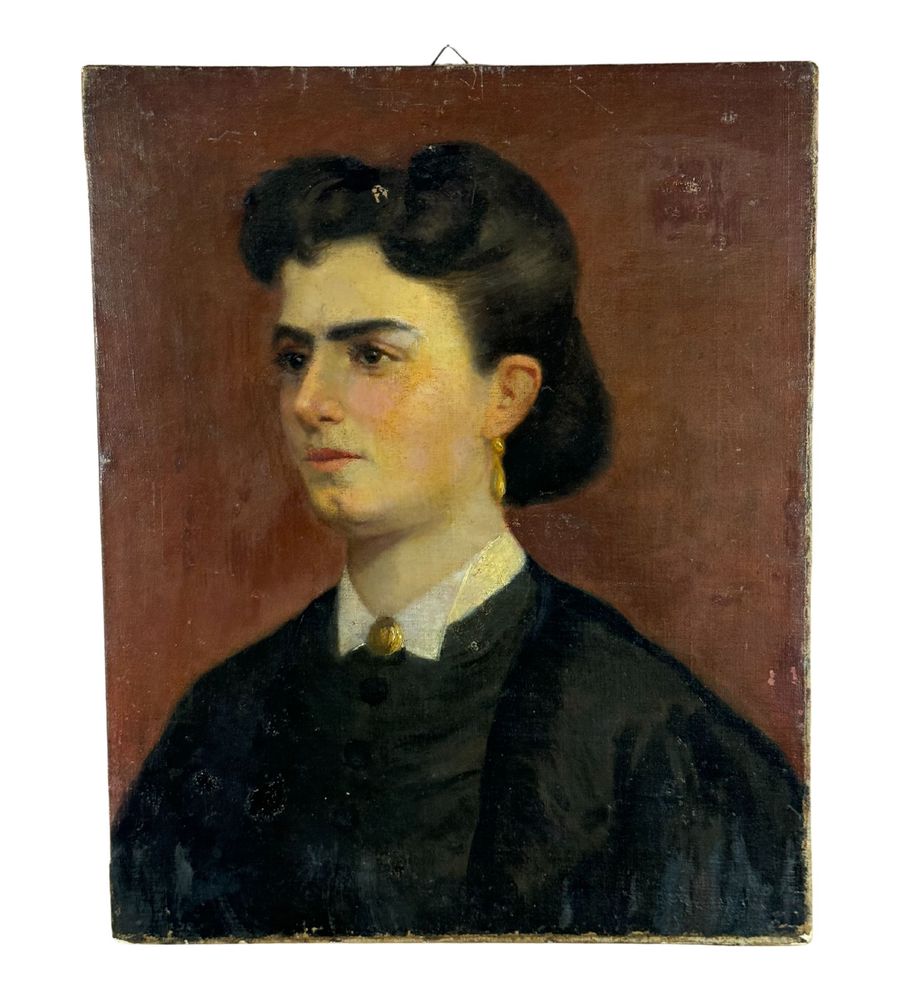Dipinto olio su tela, periodo XIX secolo scuola Italiana, raffigurante Ritratto di donna. Dimensioni: 46x56 cm. Da artista anonimo. Opera in buone condizioni, vecchio rintelo e presenta piccoli segni di restauro.