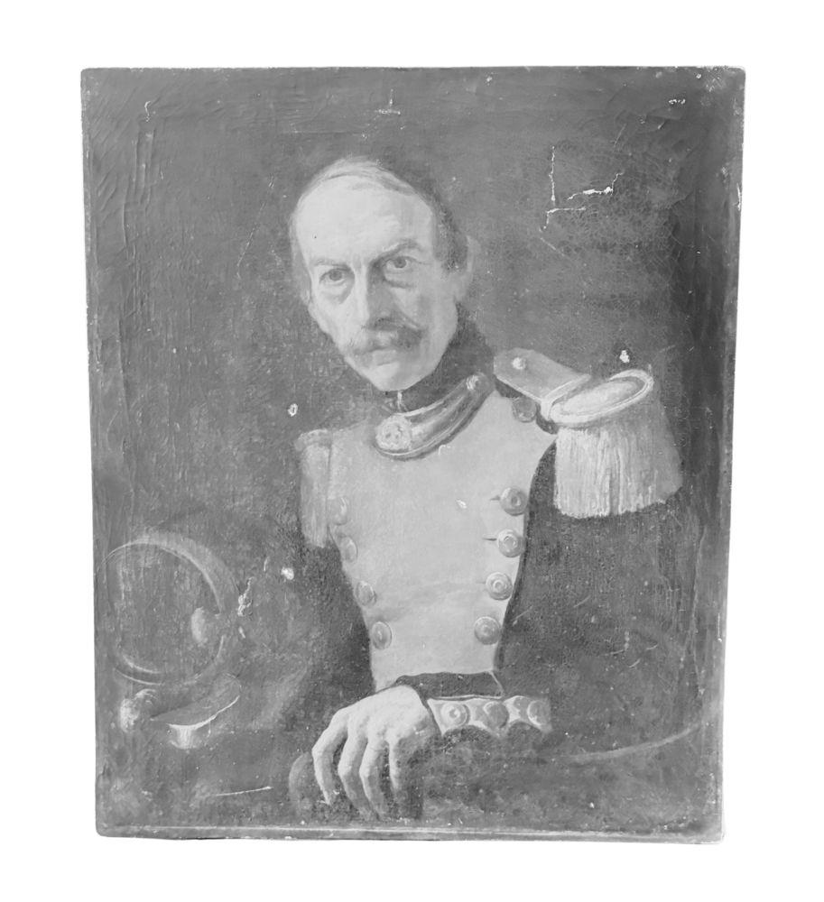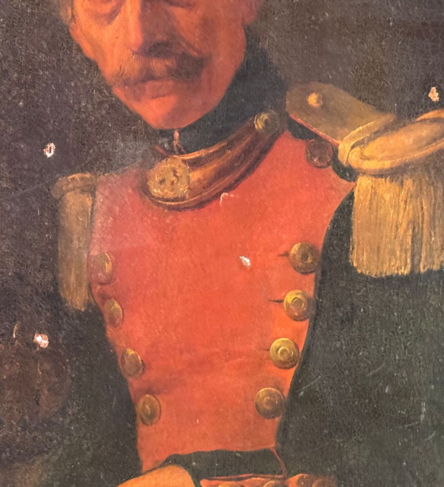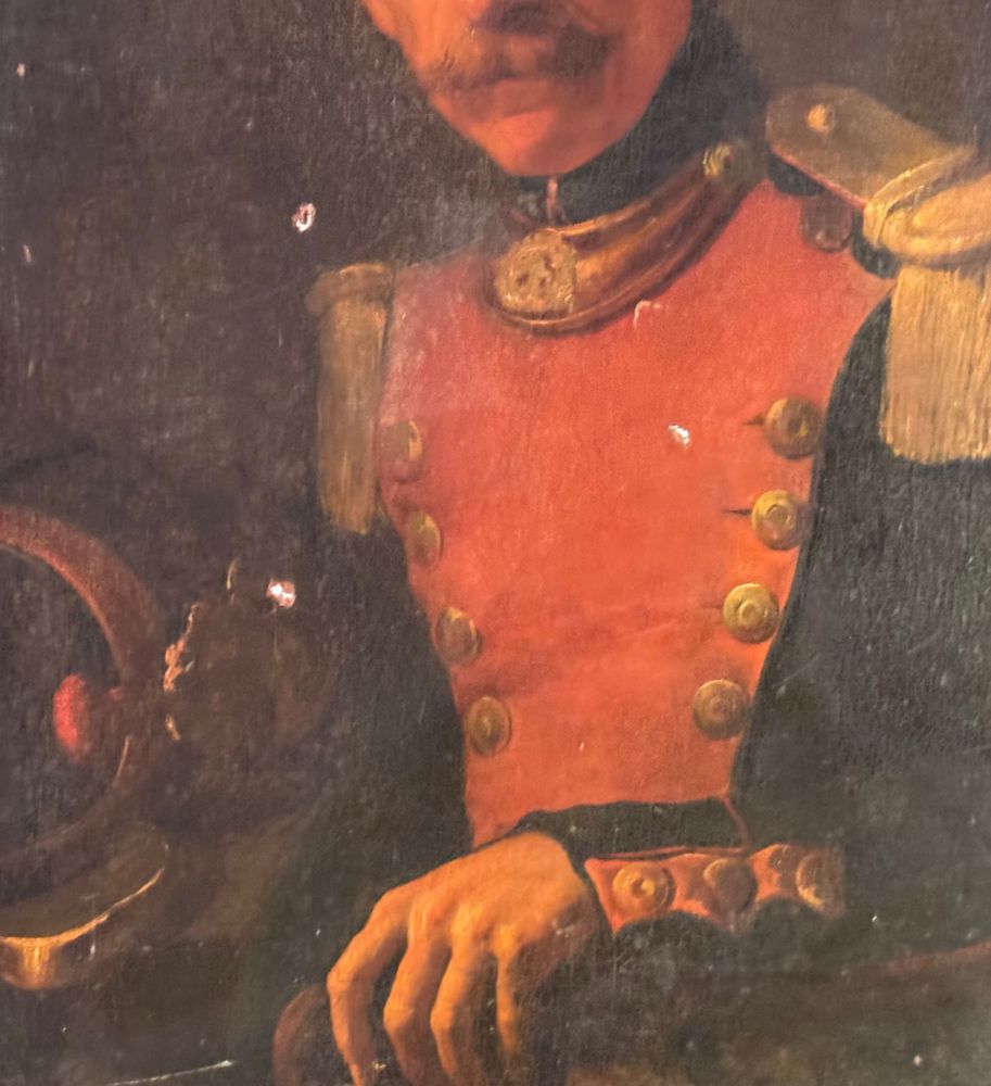 Dipinto olio su tela, periodo XIX secolo scuola Italiana, raffigurante Militare. Dimensioni: 64x77 cm. Da artista anonimo. Opera in discrete condizioni con segni di vissuto come da foto allegate.