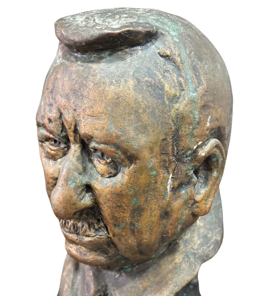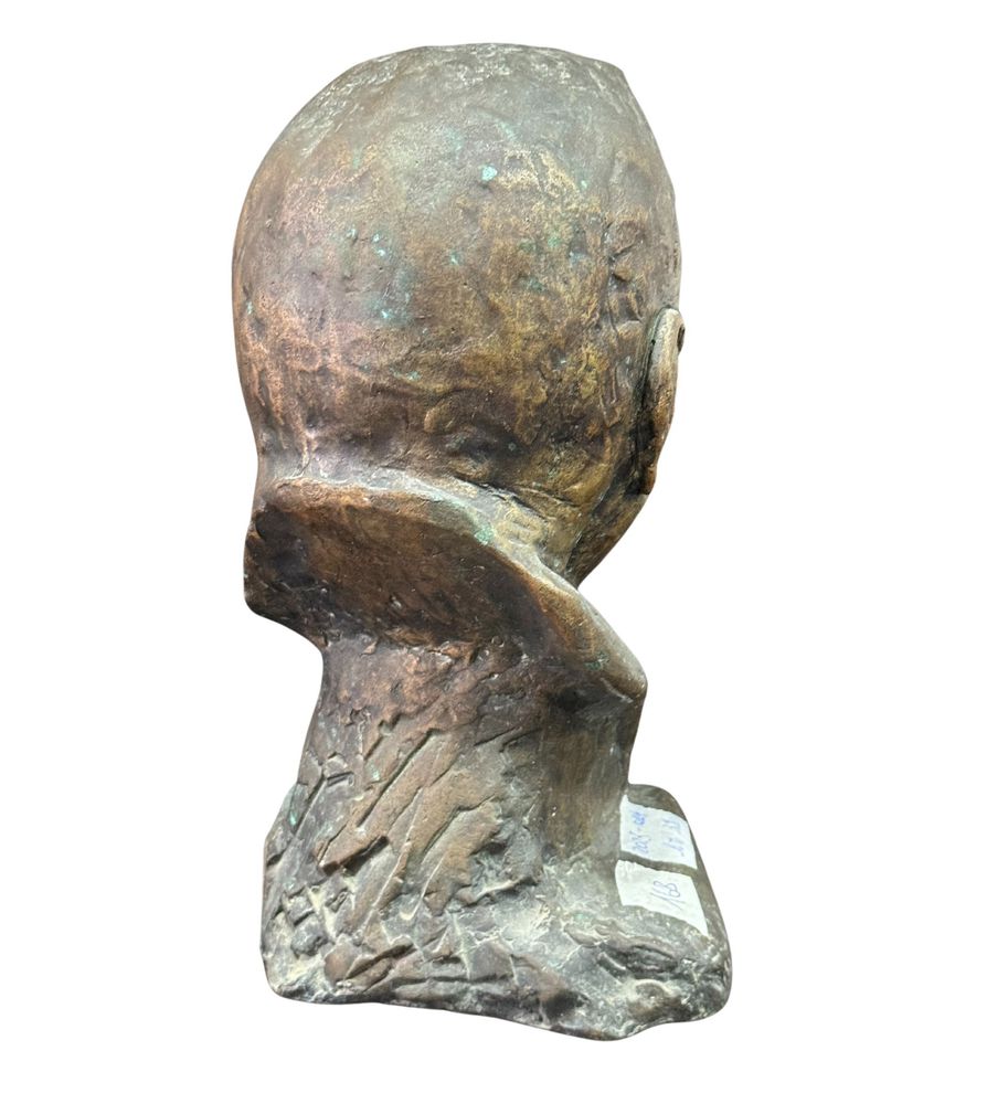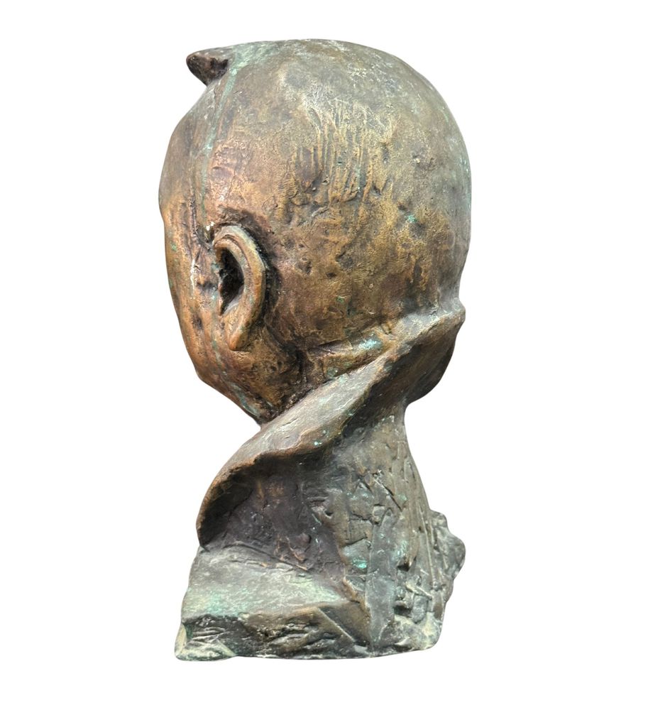 Scultura in bronzo a cera persa, periodo XX secolo, raffigurante Busto di studioso. Dimensioni: h29x15x15 cm. Scultura in buone condizioni.