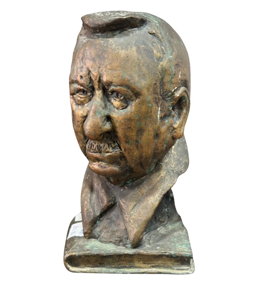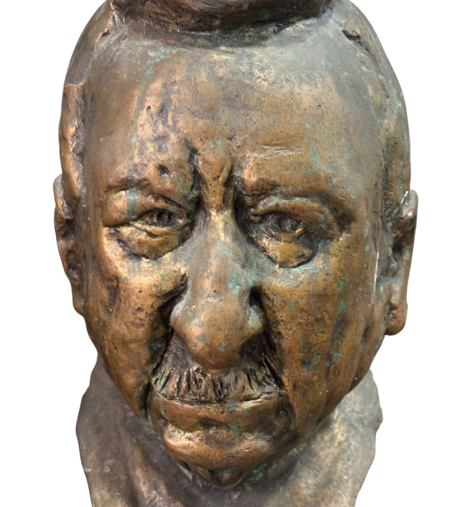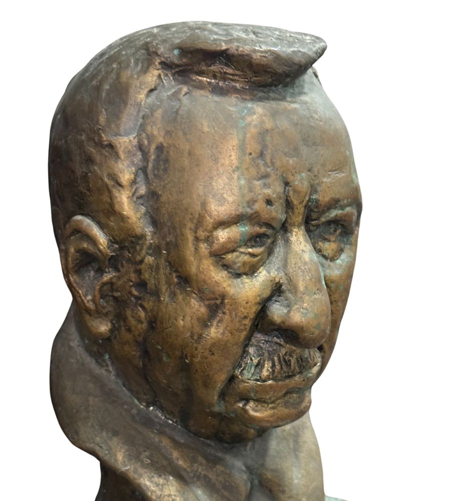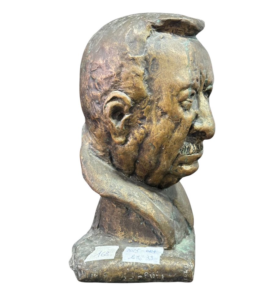 Scultura in bronzo a cera persa, periodo XX secolo, raffigurante Busto di studioso. Dimensioni: h29x15x15 cm. Scultura in buone condizioni.