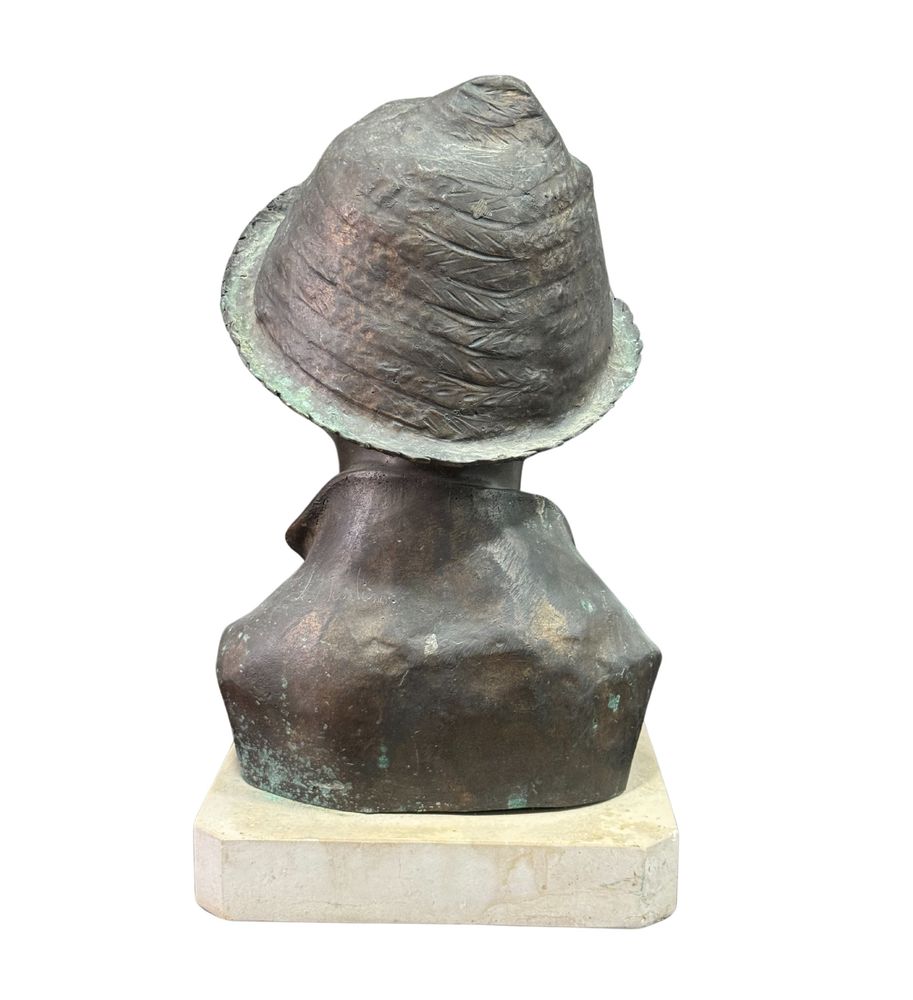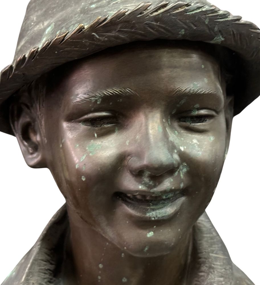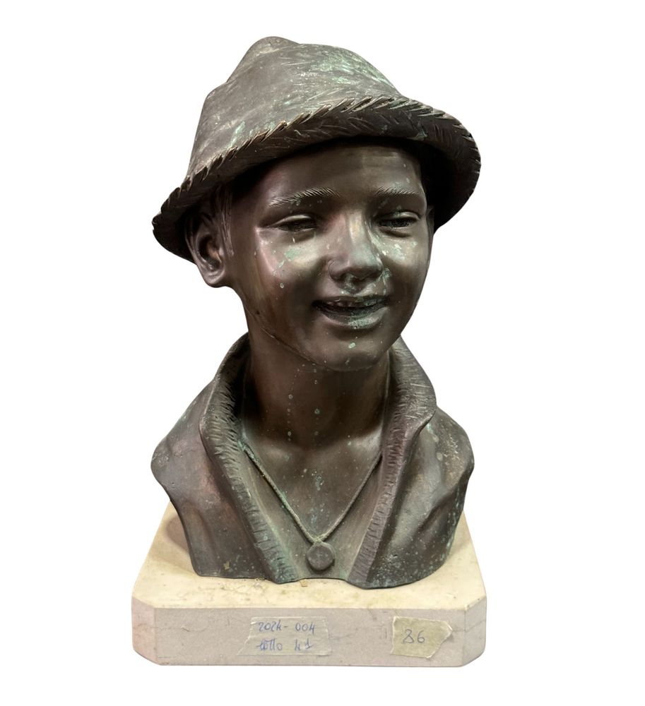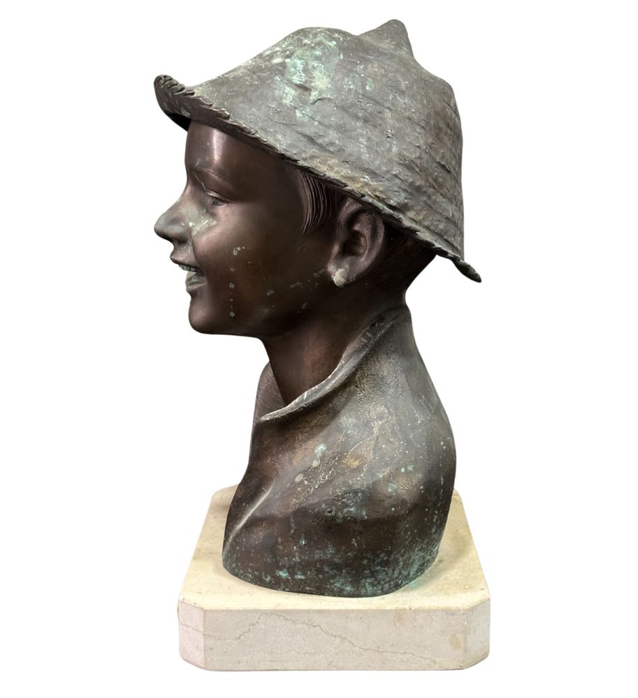 Scultura in bronzo a cera persa su base in marmo, periodo XX secolo, raffigurante Scugnizzo napoletano. Dimensioni: h38x22x18 cm. Scultura in buone condizioni. Reca firma De Martino.