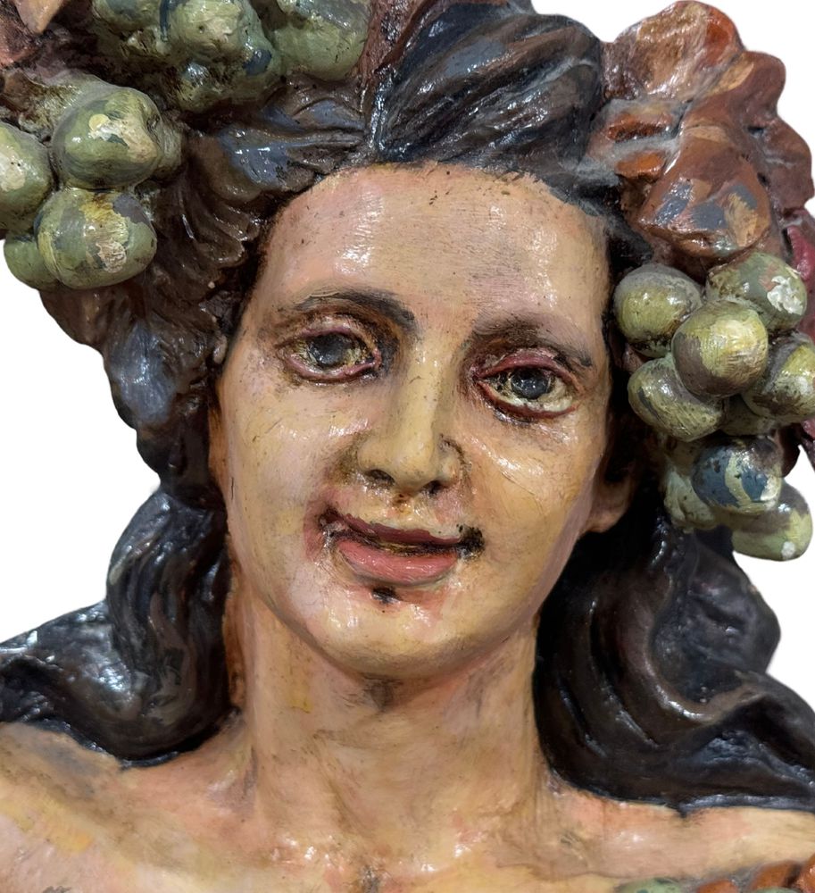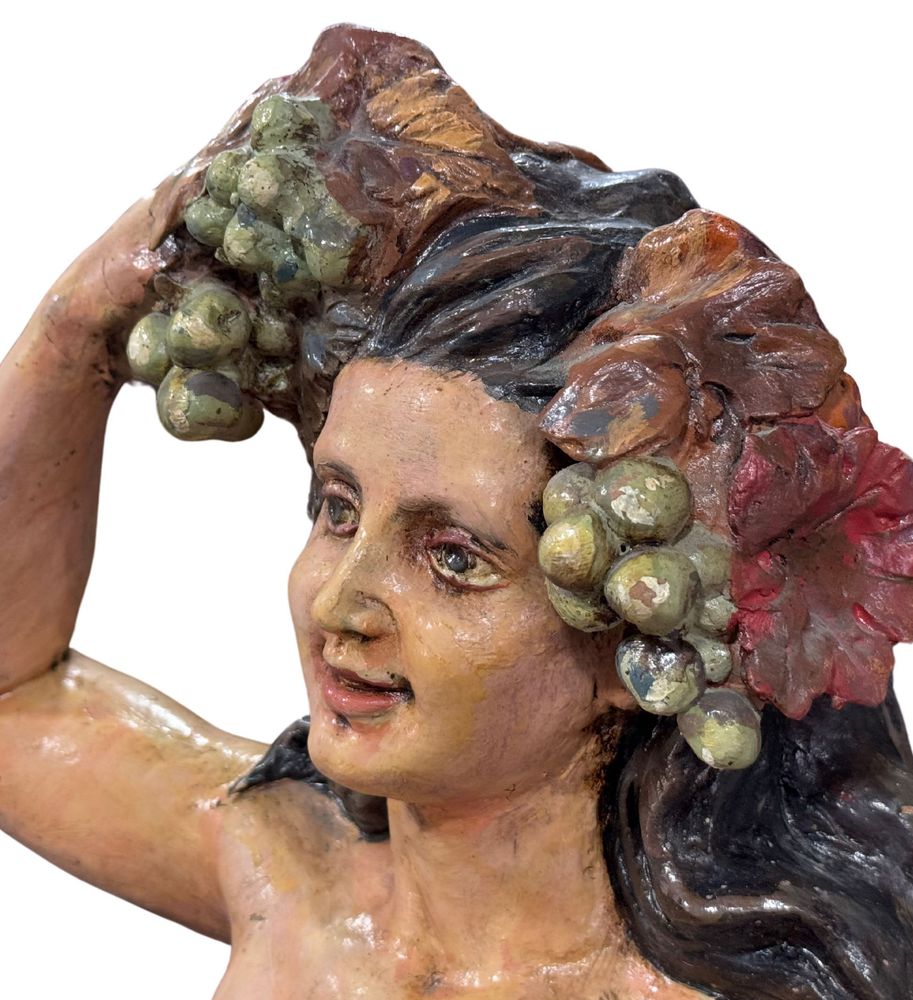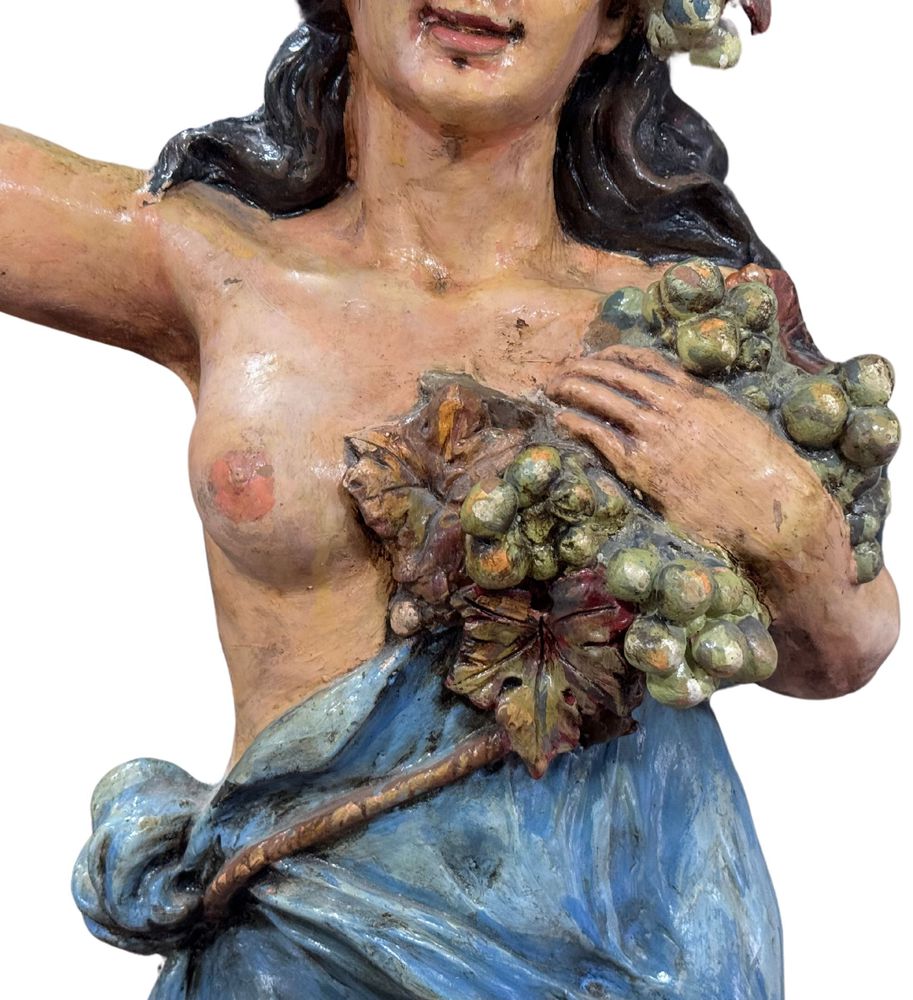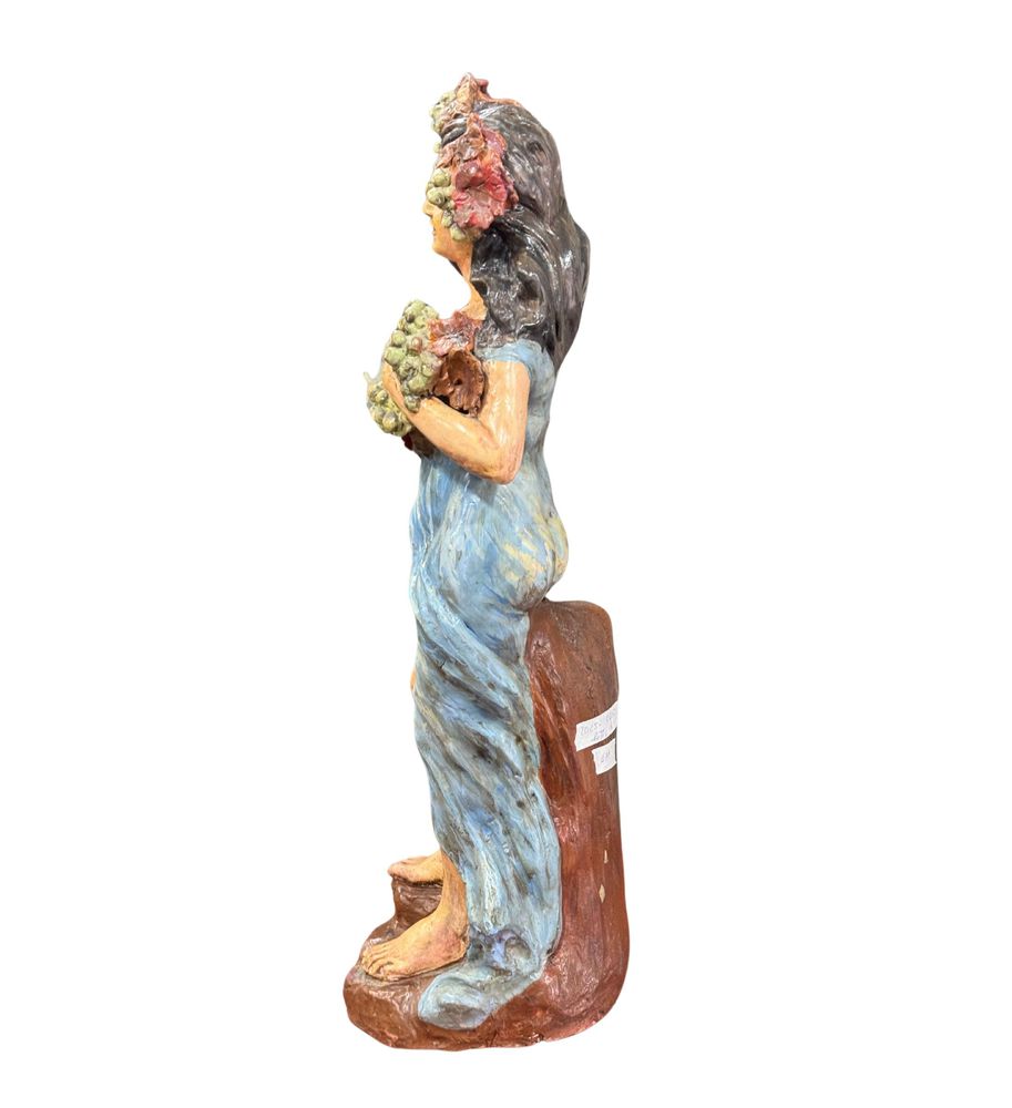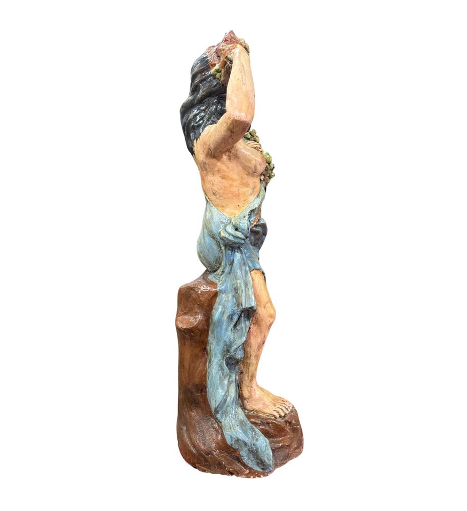 Scultura in terracotta, periodo XIX/XX secolo raffigurante Allegoria dell'uva. Dimensioni: h90x35x25 cm. Scultura in buone condizioni con lievi segni di vissuto come da foto allegate.