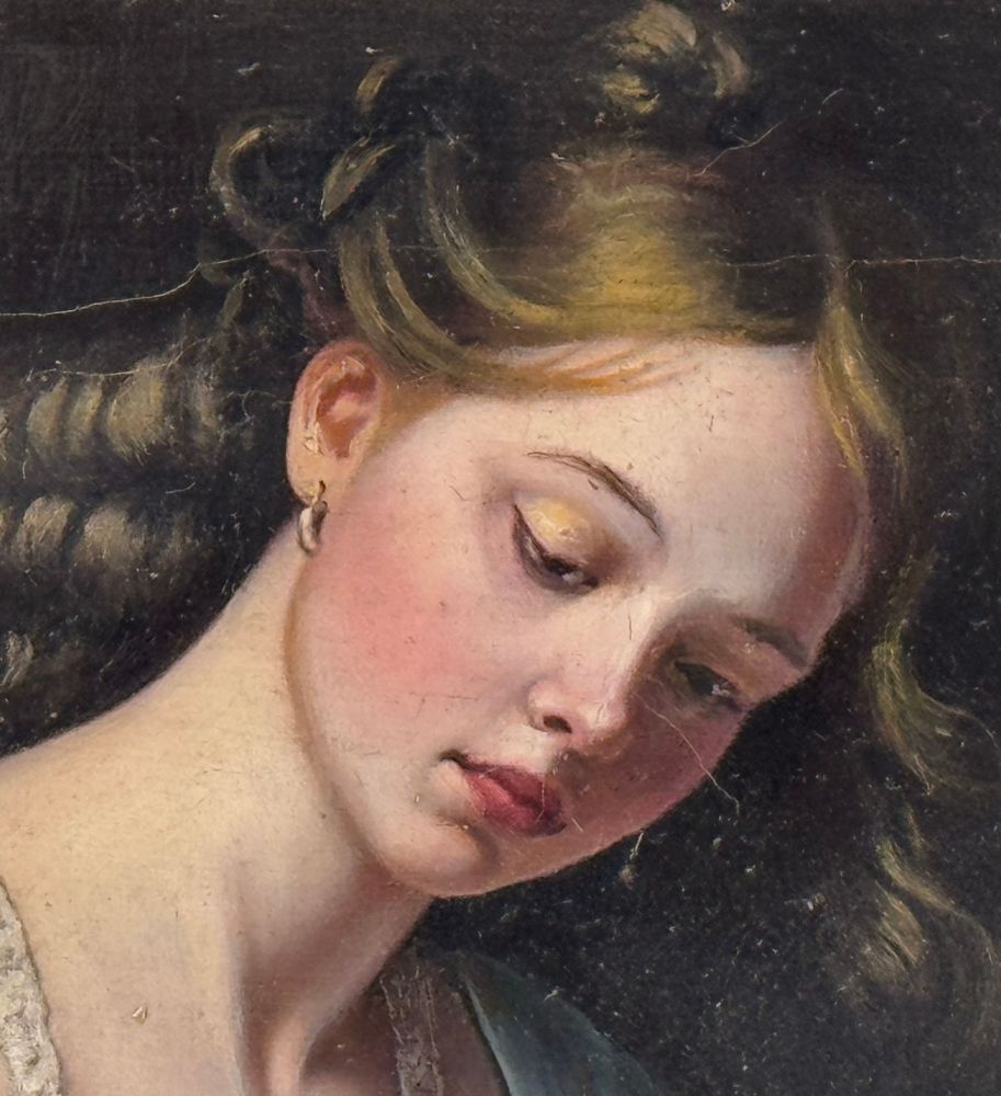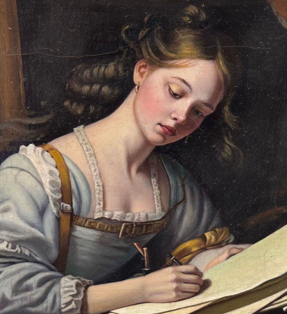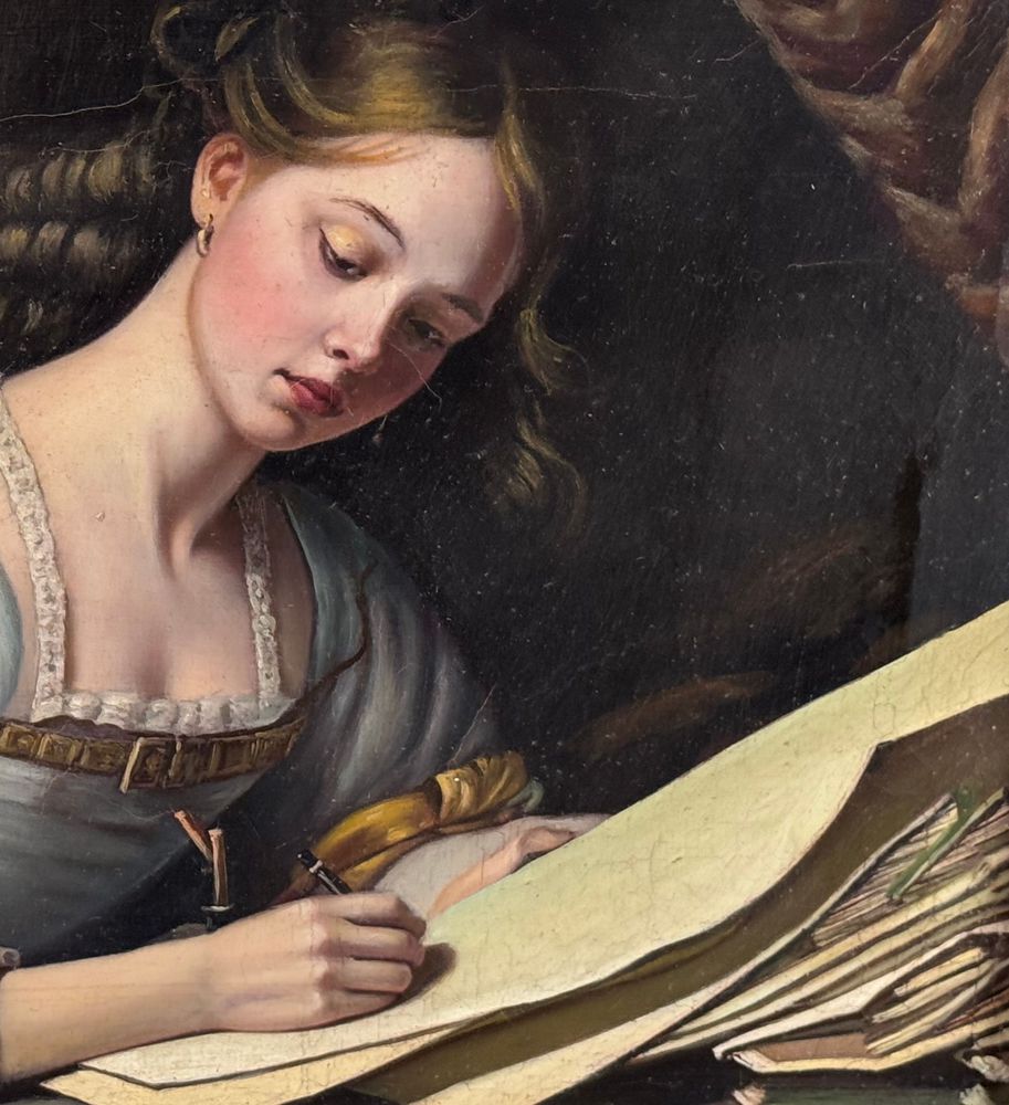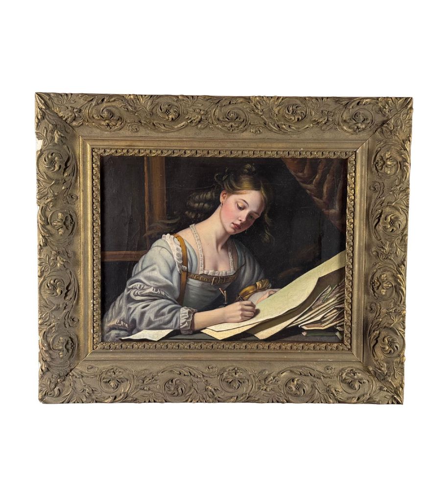 Dipinto olio su tela, periodo primi anni del XX secolo, scuola Italiana, raffigurante Donna in lettura. Dimensioni compreso cornice: 64x54 cm. Dimensioni interno cornice: 45x35 cm. Artista anonimo. Opera in buone condizioni con lievi segni di vissuto come da foto allegate.