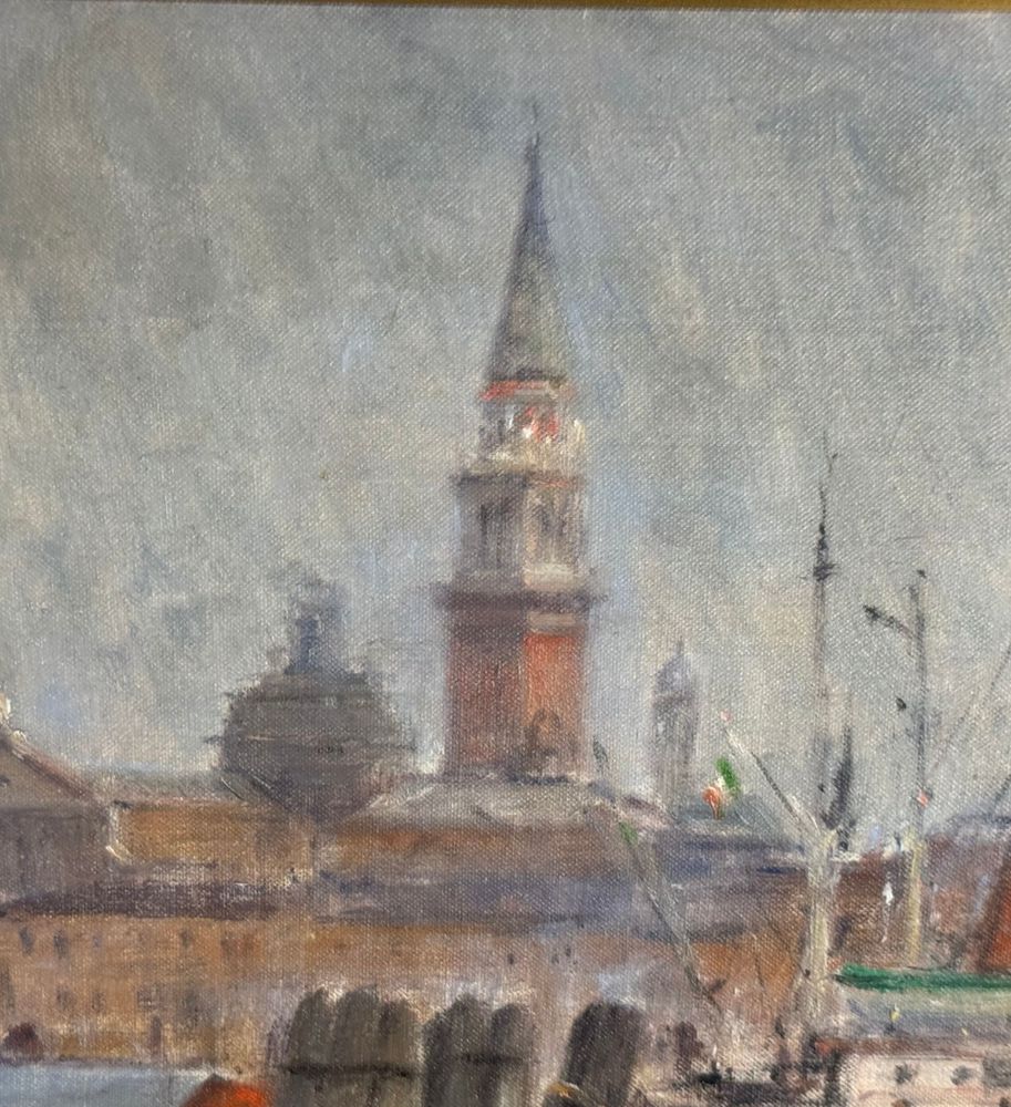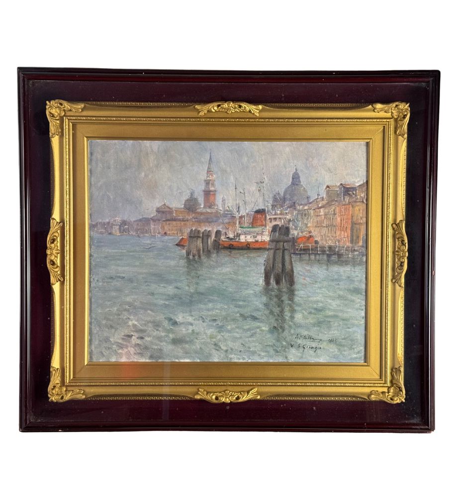 Dipinto olio su tavola, periodo XX secolo scuola Italiana, raffigurante Scorcio di Venezia. Dimensioni compreso cornice: 73,5x64 cm. Dimensioni interno cornice: 50x40 cm. Reca firma in basso a destra Antonio D'Urso. Opera in buone condizioni.