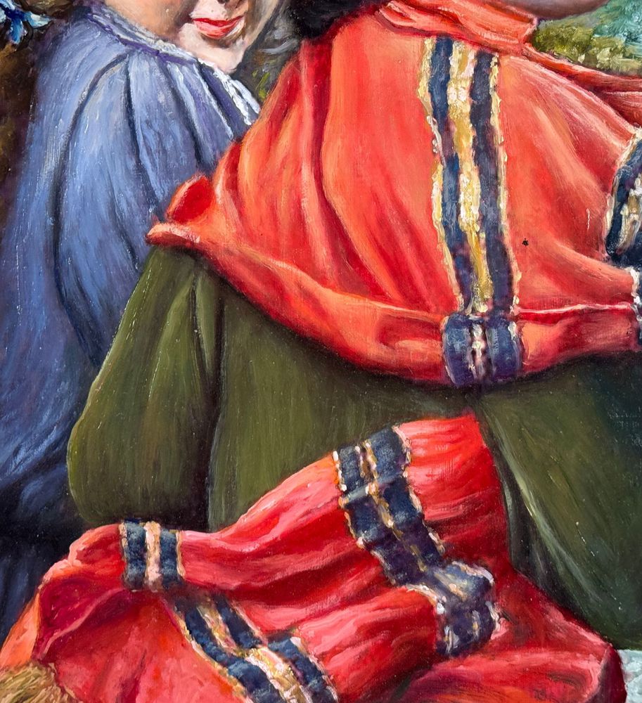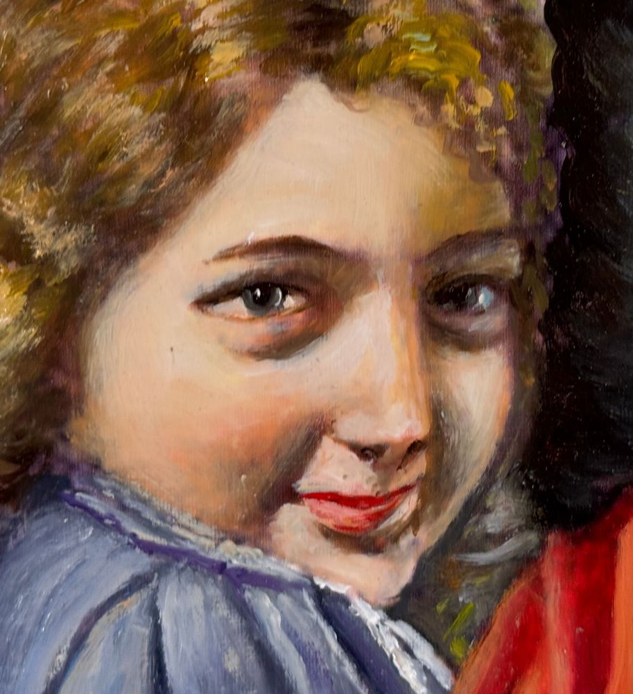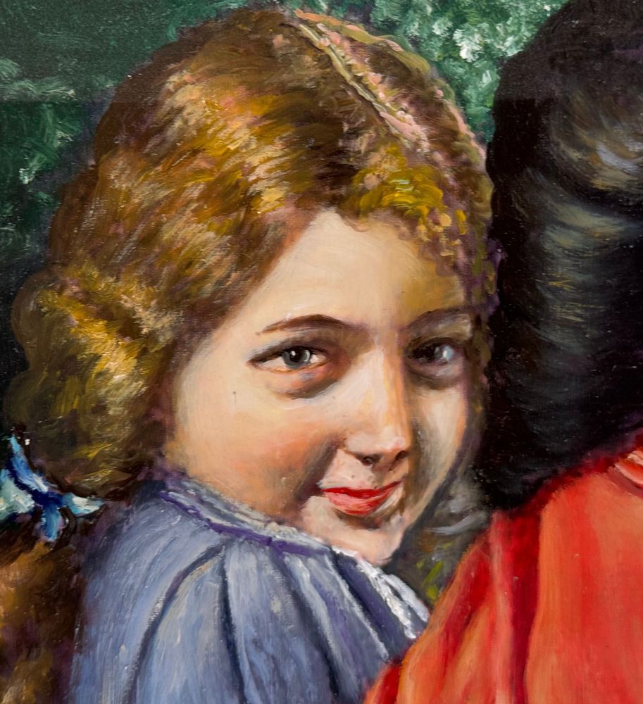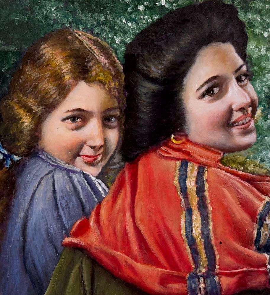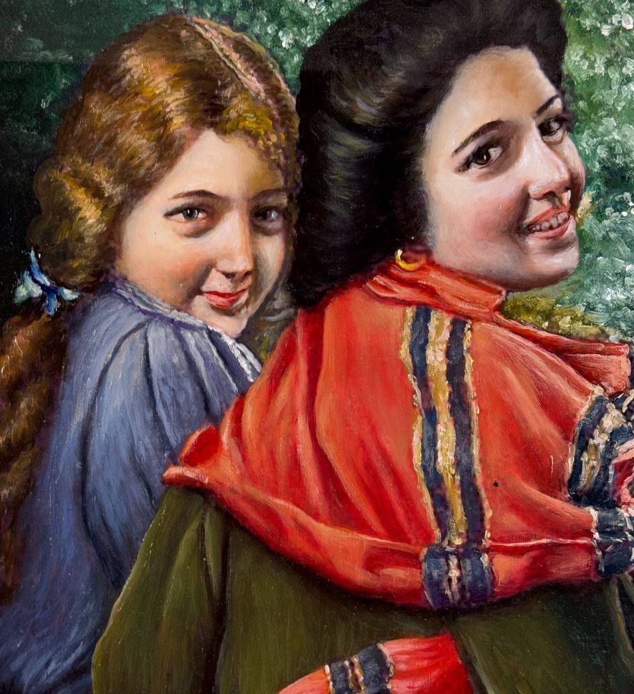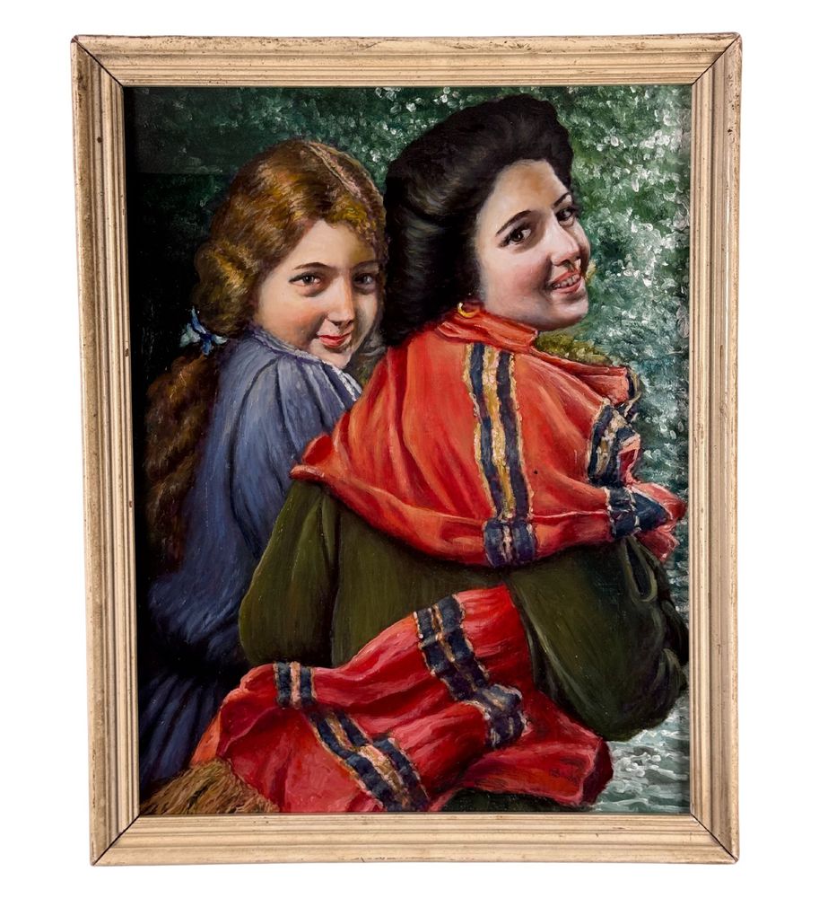 Dipinto olio su cartoncino, periodo XX secolo scuola Italiana, raffigurante Ritratto di due donne. Dimensioni compreso cornice: 39x49 cm. Dimensioni interno cornice: 35x45 cm. Artista anonimo. Opera in buone condizioni.