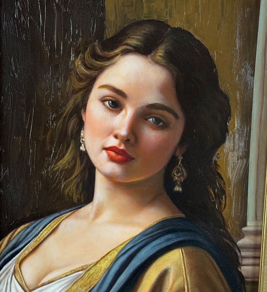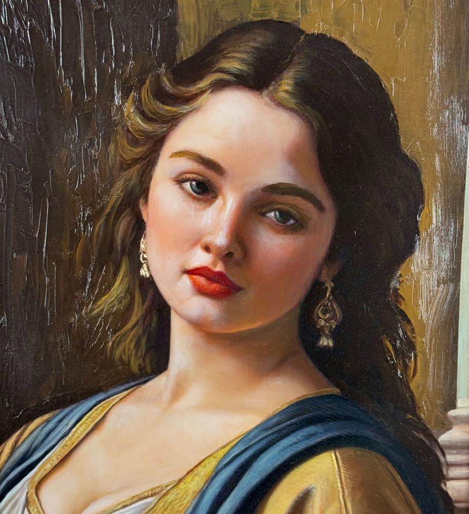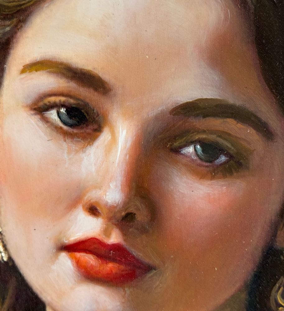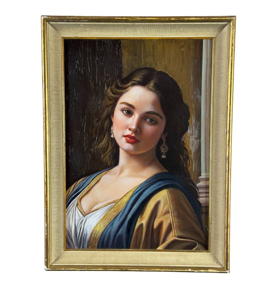 Dipinto olio su cartoncino, periodo XX secolo, scuola Italiana, raffigurante Ritratto di donna. Dimensioni compreso cornice: 43x58 cm. Dimensioni interno cornice: 35x50 cm. Artista anonimo. Opera in buone condizioni.