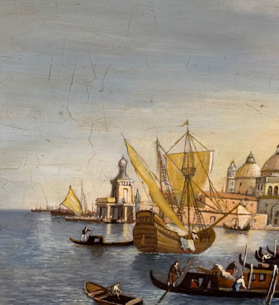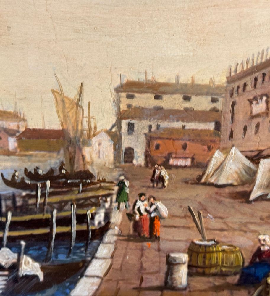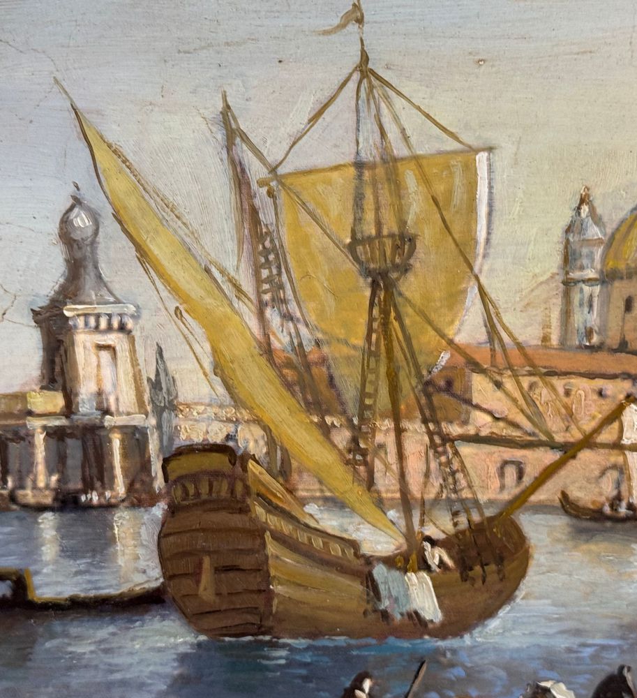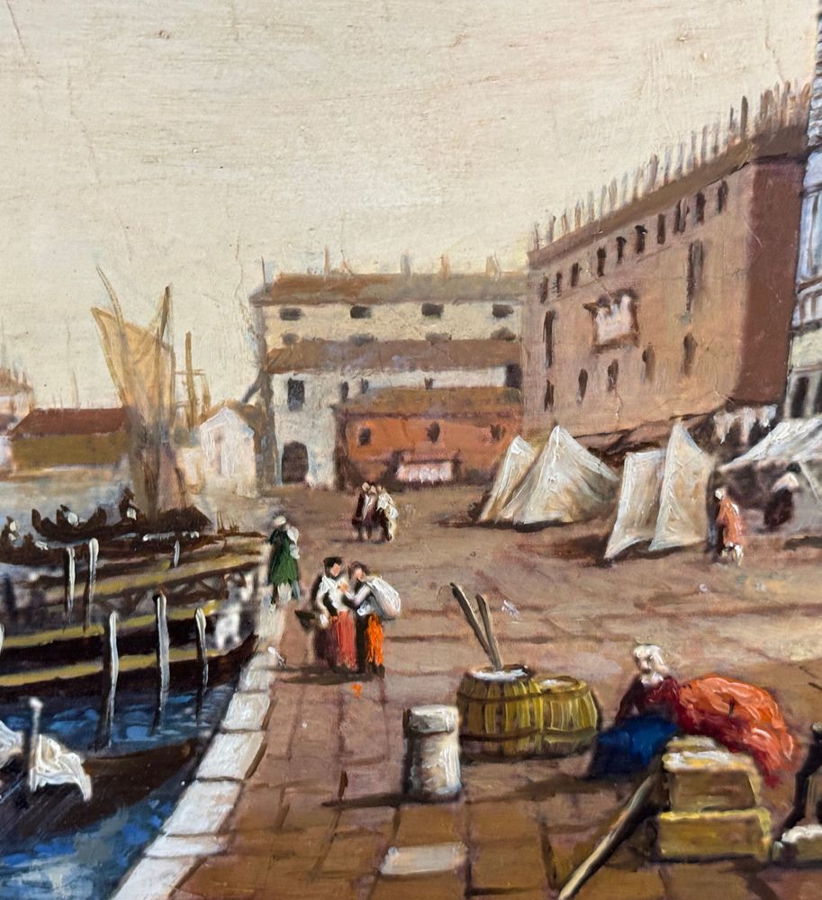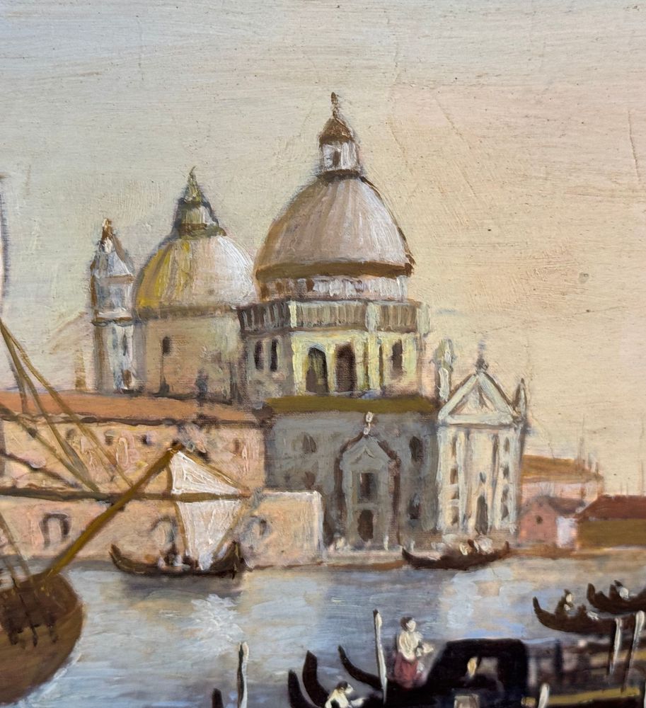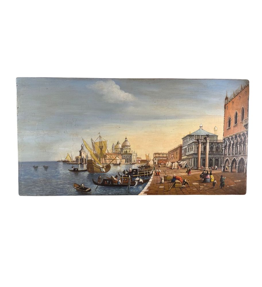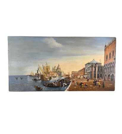 Dipinto olio su tavola, periodo primi anni del XX secolo, scuola Italiana, raffigurante Venezia. Dimensioni: 77x40 cm. Artista anonimo. Opera in buone condizioni.