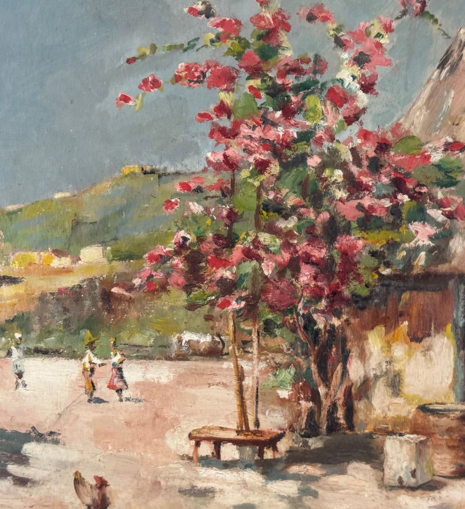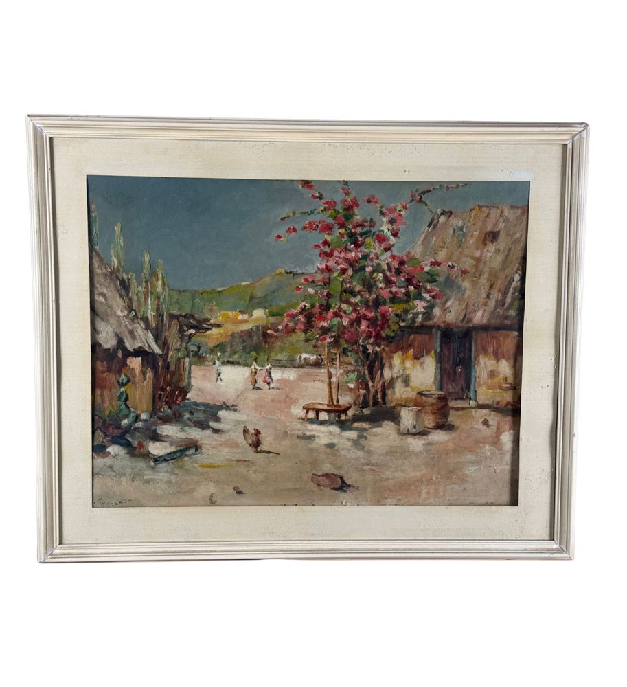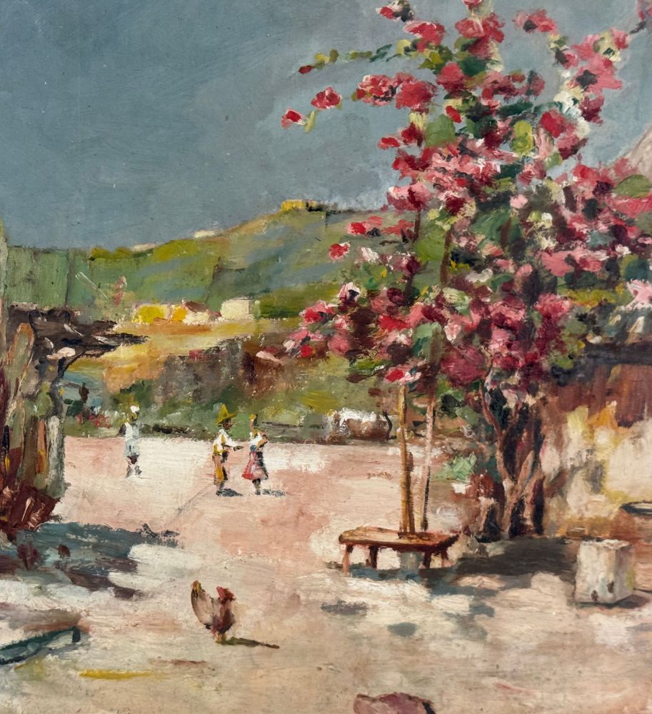 Dipinto olio su tavola, periodo XX secolo, scuola Italiana, raffigurante Paesaggio di campagna con personaggi. Dimensioni compreso cornice: 57x46 cm. Dimensioni interno cornice: 46x36 cm. Reca firma in basso a sinistra Carmine Acceso. Opera in buone condizioni.