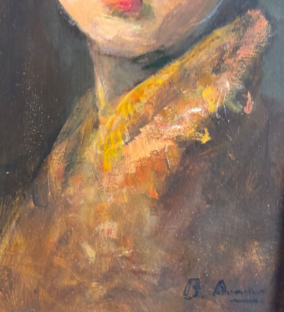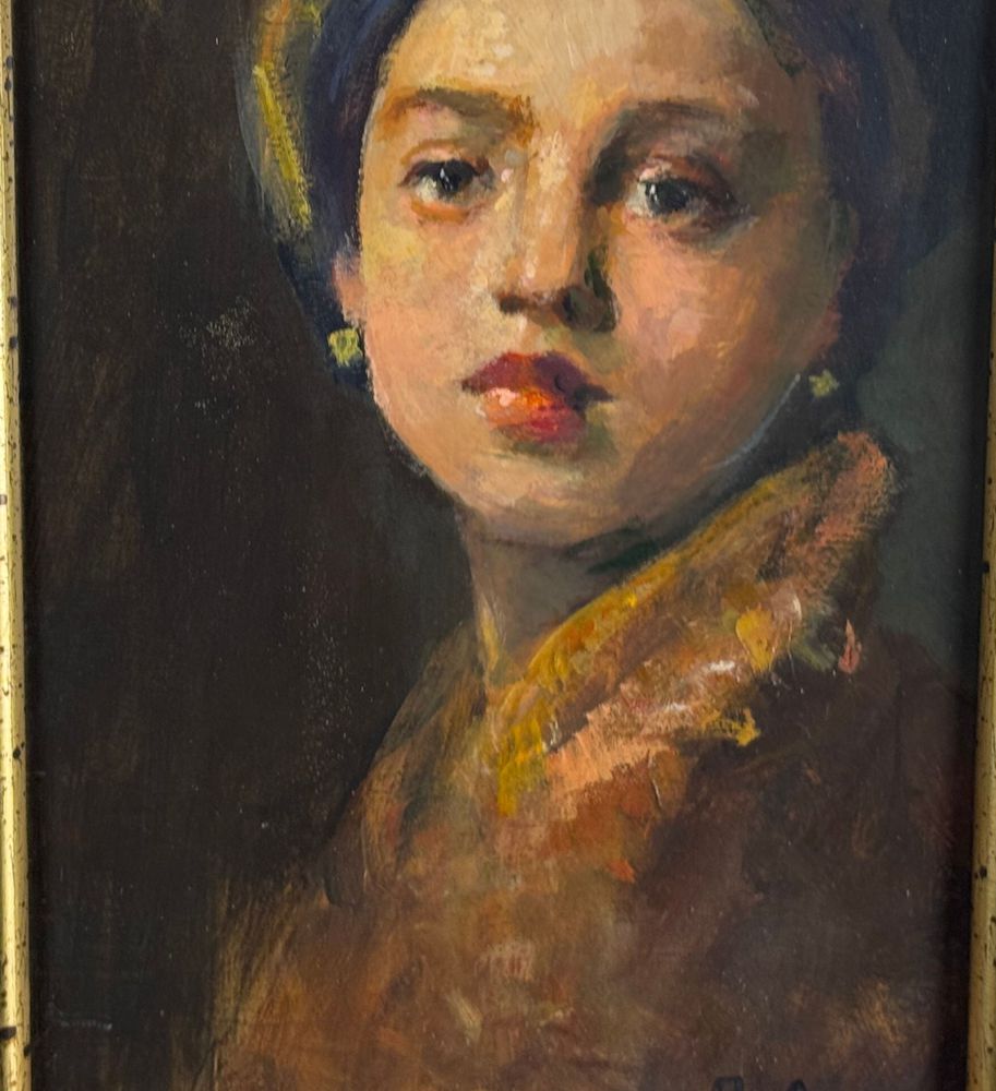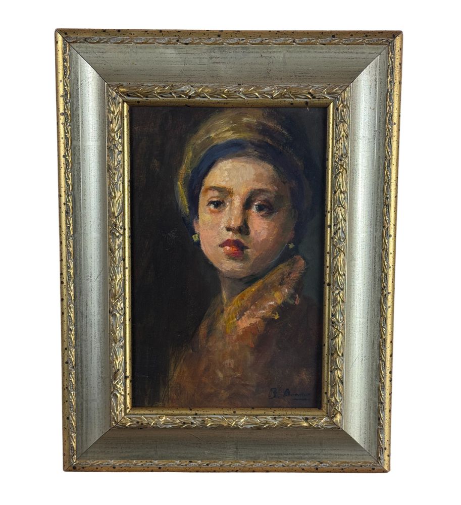 Dipinto olio su tavola, periodo XX secolo, scuola Italiana, raffigurante Ritratto di donna. Dimensioni compreso cornice: 31x40 cm. Dimensioni interno cornice: 19x28 cm. Reca firma in basso a destra artista non identificato. Opera in buone condizioni.