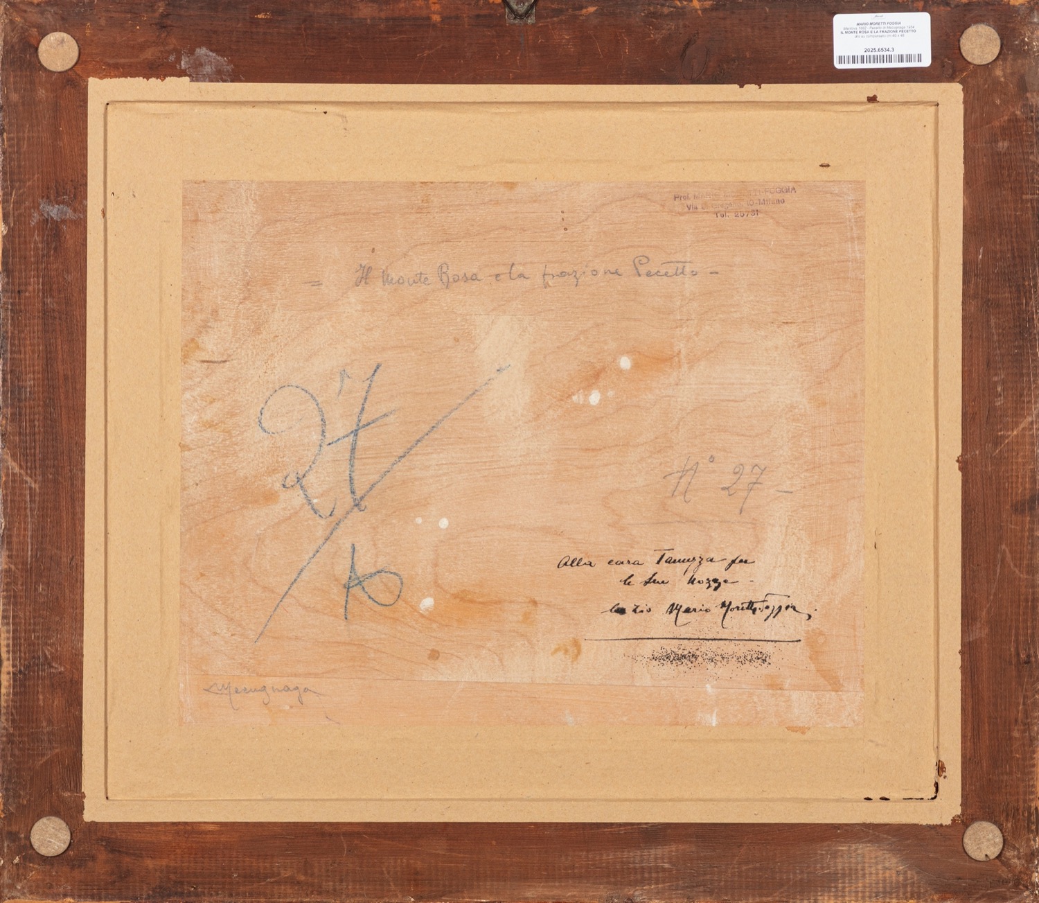 al retro, sul compensato, titolato, dedicato e firmato; timbro del pittore