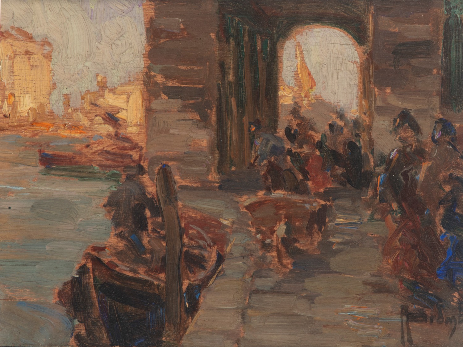 Angelo Brombo (Chioggia 1893 - Padova 1962) - Chioggia, Riva dell'Ospitale, 1931