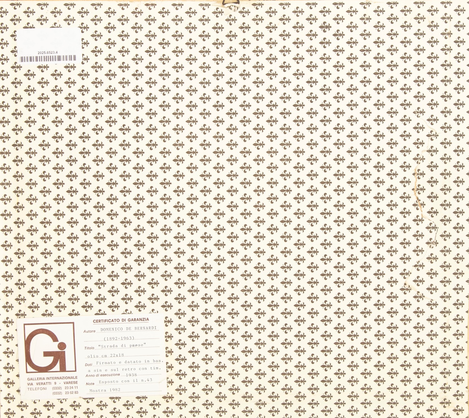 al retro, etichetta della Galleria Internazionale di Varese