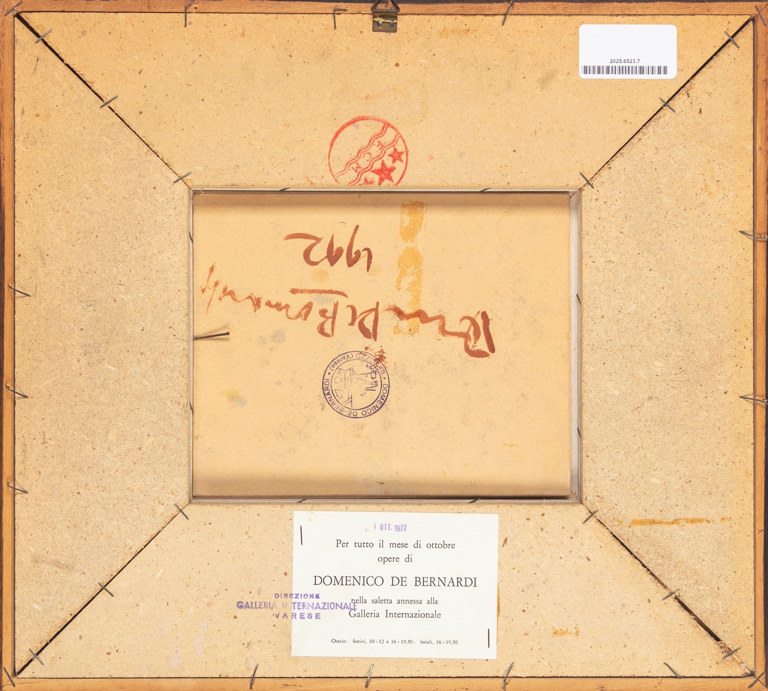 al retro, firmato, datato e timbro del pittore; sempre al retro, sulla cornice, etichetta della Galleria Internazionale di Varese