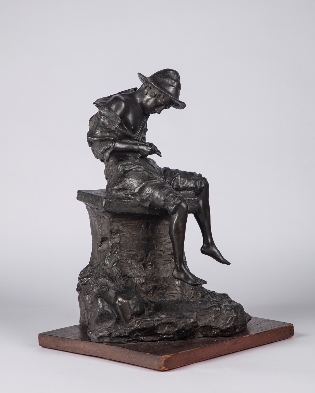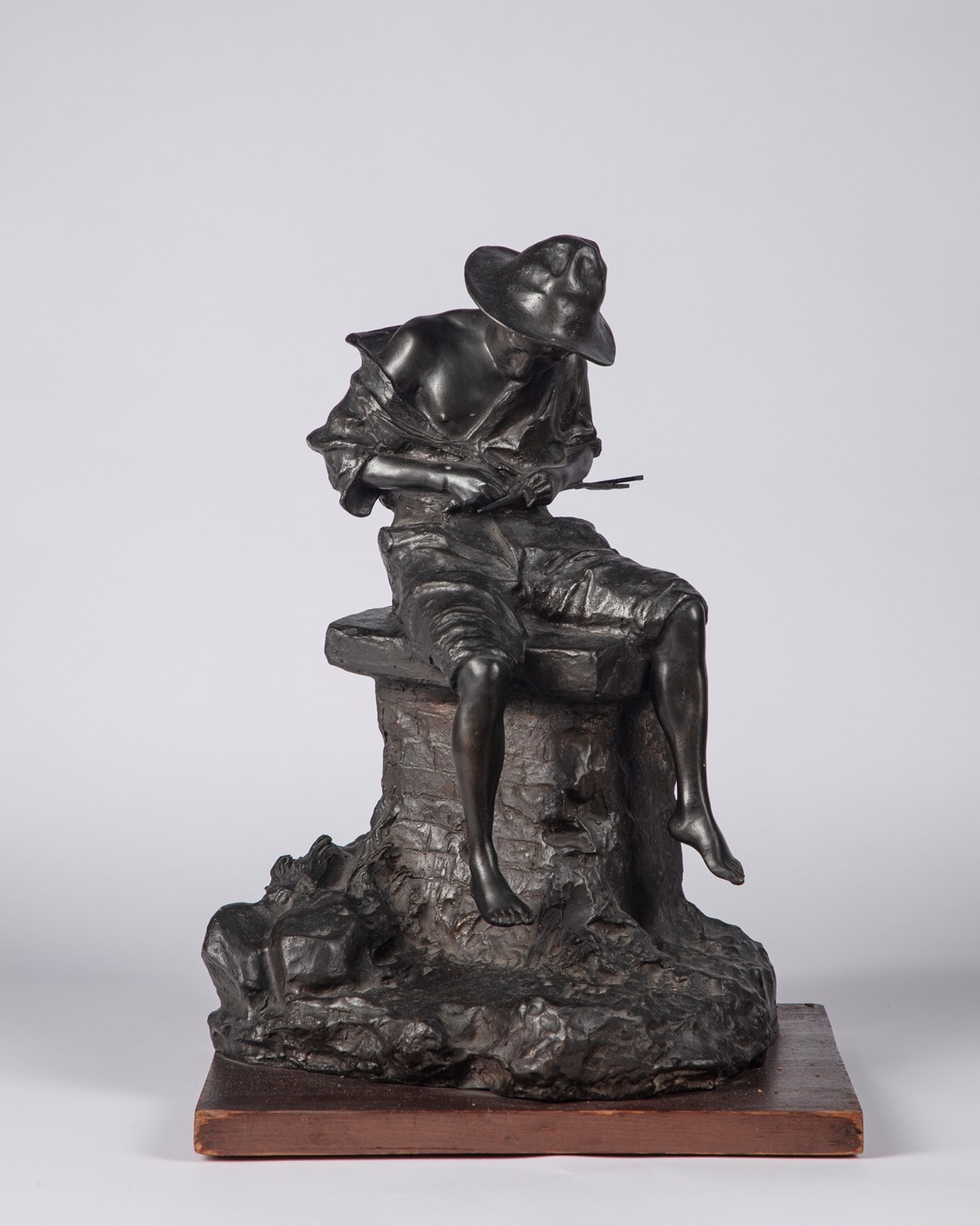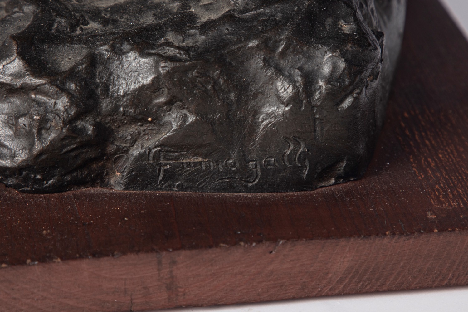 scultura in bronzo su base in legno