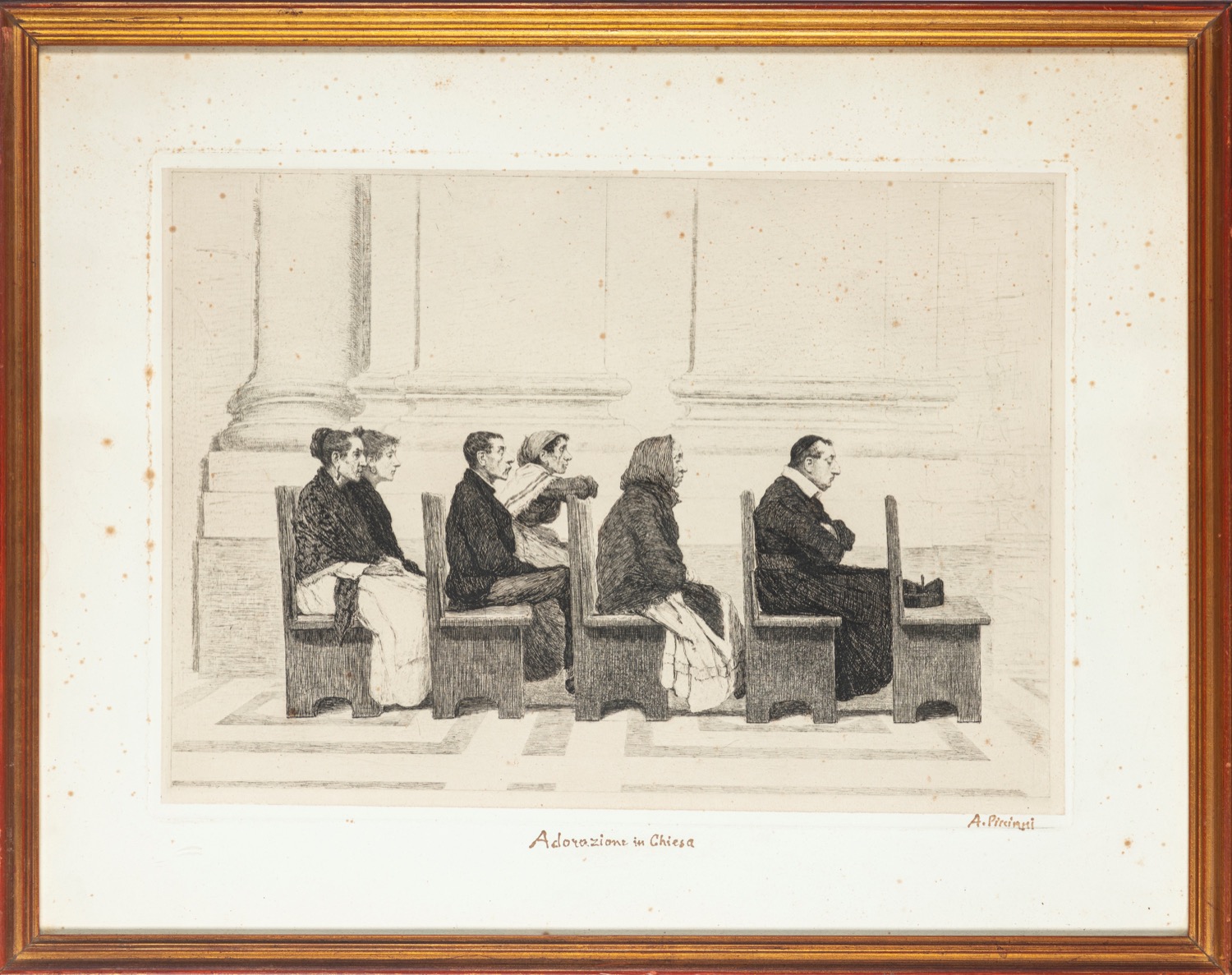 Antonio Piccinni (Trani 1846 - Roma 1920) - Adorazione in chiesa