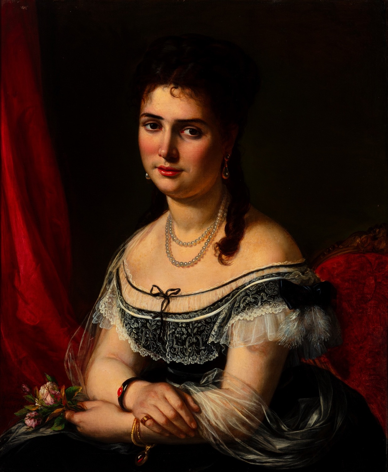 Vincenzo Morani (Polistena 1809 - Roma 1870) - Ritratto di Emilia Titoni con fiori in mano, 1869