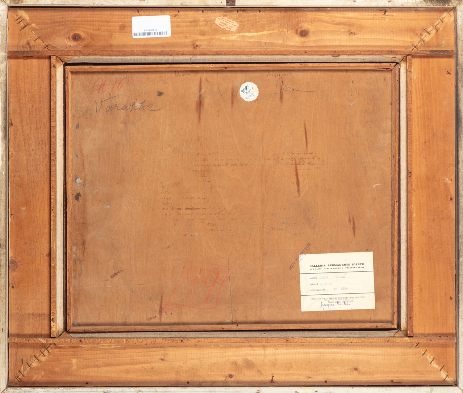 al retro, sul compensato, iscrizione del pittore ed etichetta della Galleria Permanente d'Arte di Bergamo