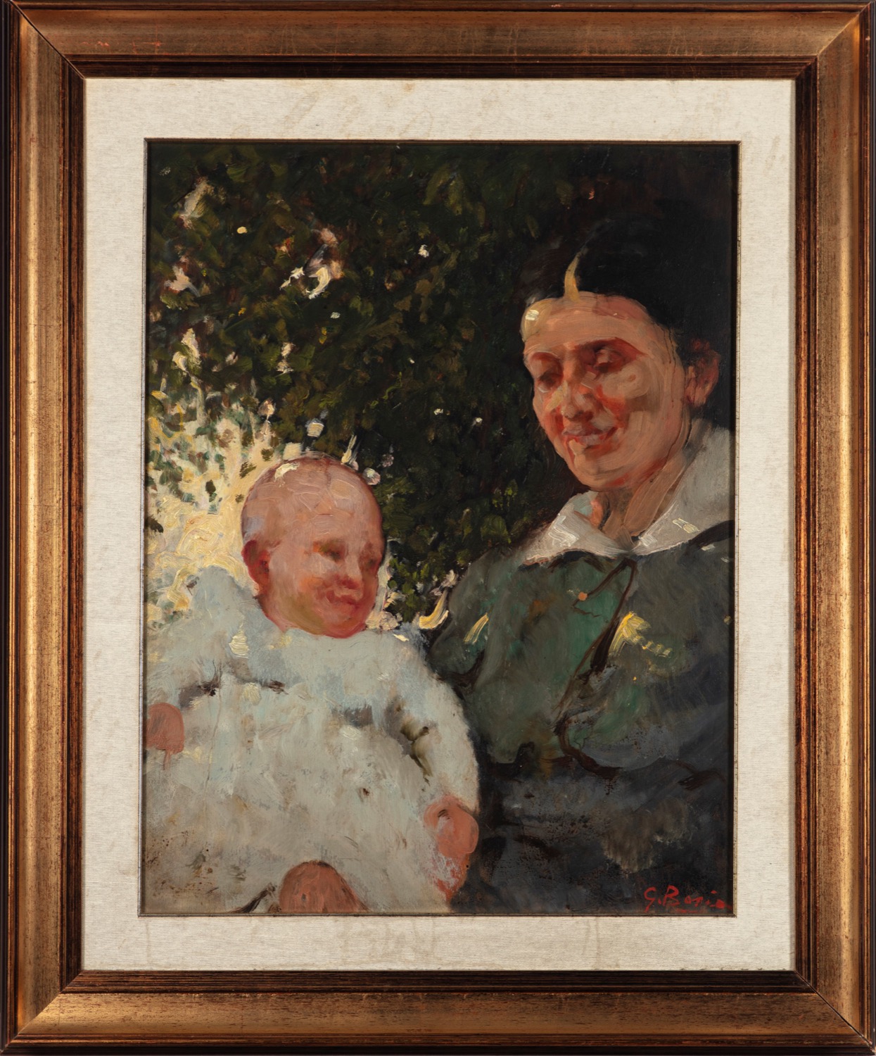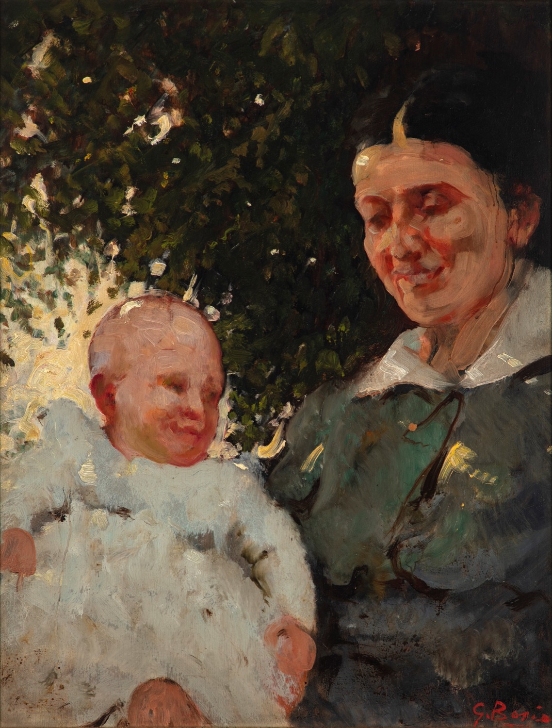 Giuseppe Bosio (Torino 1875 - 1972) - Madre e figlio - impressioni all'aperto, 1932