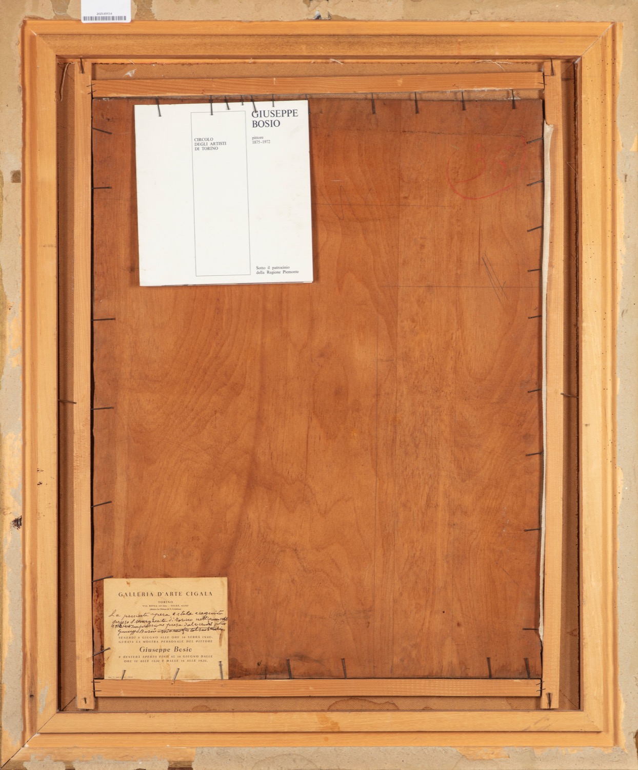 al retro, sul compensato, etichetta della Galleria d'Arte Cigala di Torino