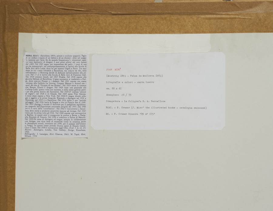 MIRO' JOAN (1893 - 1983) DALLA CARTELLA ODA A JOAN MIRO'. 1973. litografia. Cm 61,00 x 88,00. firma e tiratura a matita, es. 26/75