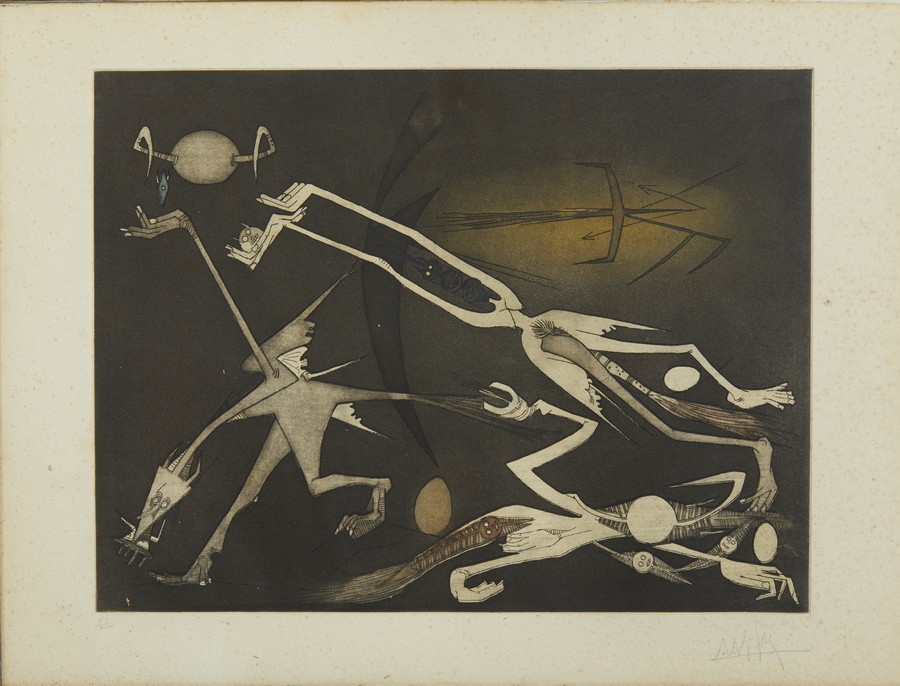 LAM WILFREDO (1902 - 1982) DA ANNONCIATION DE AIME CESAIRE, 1969-1971. Acquaforte e acquatinta. Cm 84,00 x 62,50. firma e tiratura a matita, es.VII/XXX