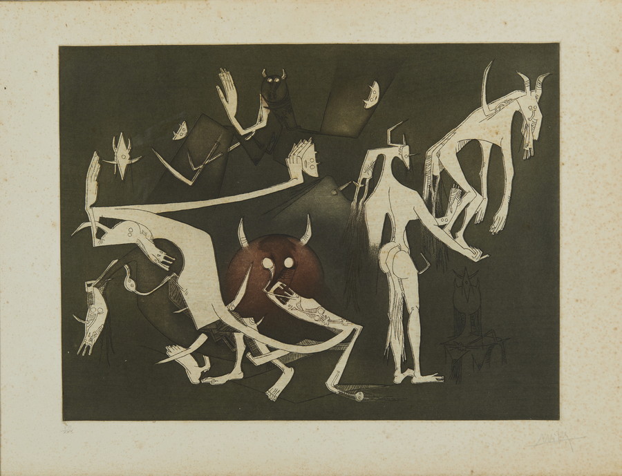 LAM WIFREDO (1902 - 1982) DA ANNONCIATION DE AIME CESAIRE, 1969-1971. Acquaforte e acquatinta. Cm 84,00 x 62,50. firma e tiratura a matita, es.VII/XXX