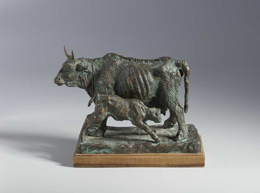 LIGABUE ANTONIO (1899 - 1965) VACCA CON VITELLO (1956). Scultura in bronzo fuso a cera persa. Cm 40,00 x 30,00 x 22,00. marchio Galleria Zammarchi, Roma, es. p.a.