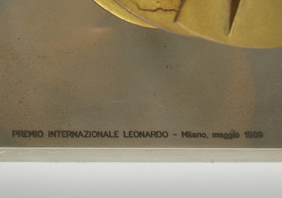 POMODORO ARNALDO (n. 1926) UNA VITE, PREMIO INTERNAZIONALE LEONARDO. 1989. bronzo dorato e ottone argentato. Cm 17,00 x 36,00 x 17,00. sulla base: firma, data e tiratura, es.12/20.