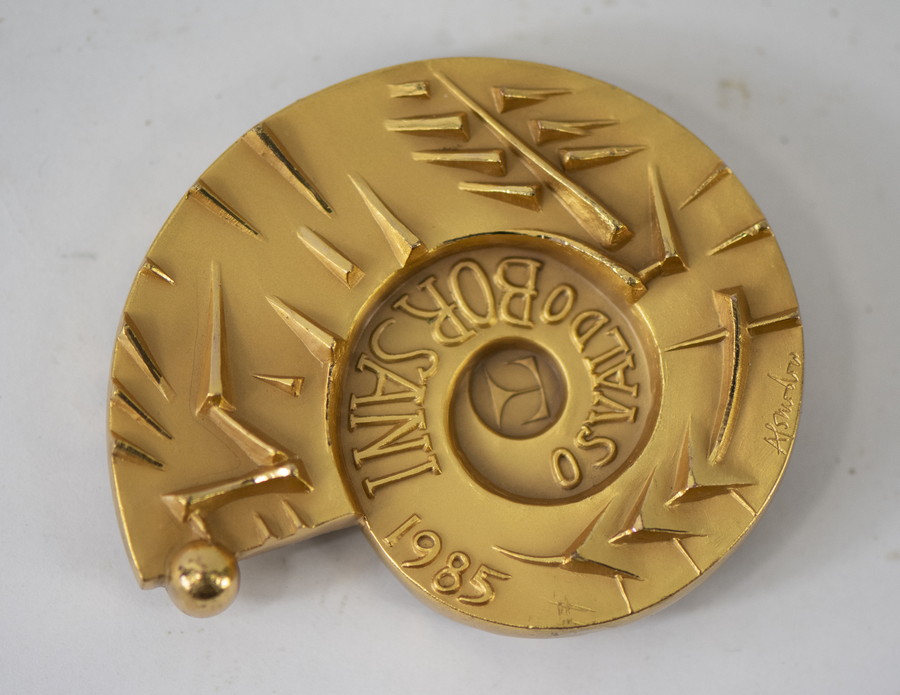 POMODORO ARNALDO (n. 1926) OMAGGIO A OSVALDO BORSANI. 1985. Bronzo dorato. Cm 6,50 x 8,00 x 1,00. firma incisa alla base