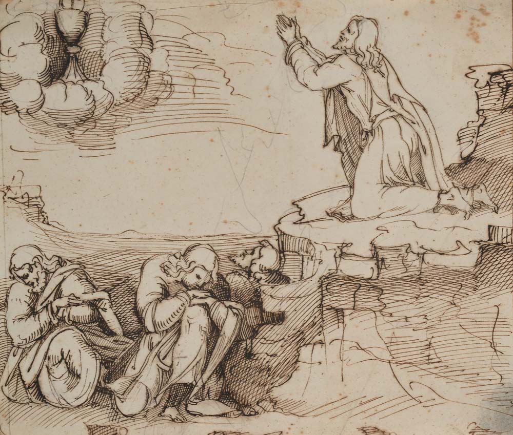 Bartolomeo Passarotti (bottega di) Orazione nell'orto China su carta mm 265x310 - con cornice cm 42x46
