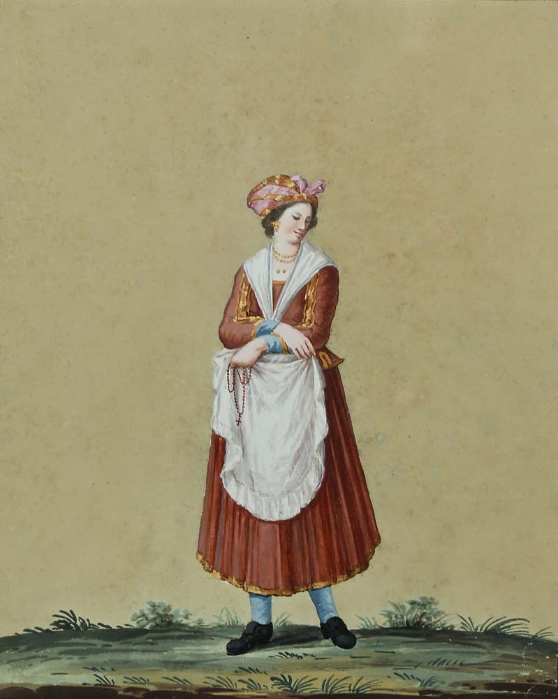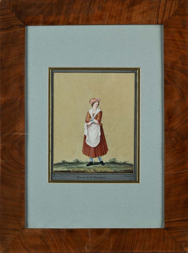 Alessandro D'Anna Donna di S. Tammaro 1787 Firmato "Alessan. d'Anna pin." in basso a sinistra e datato "Napoli 1787" in basso a destra Tempera su carta mm 210x170 - con cornice cm 53x40