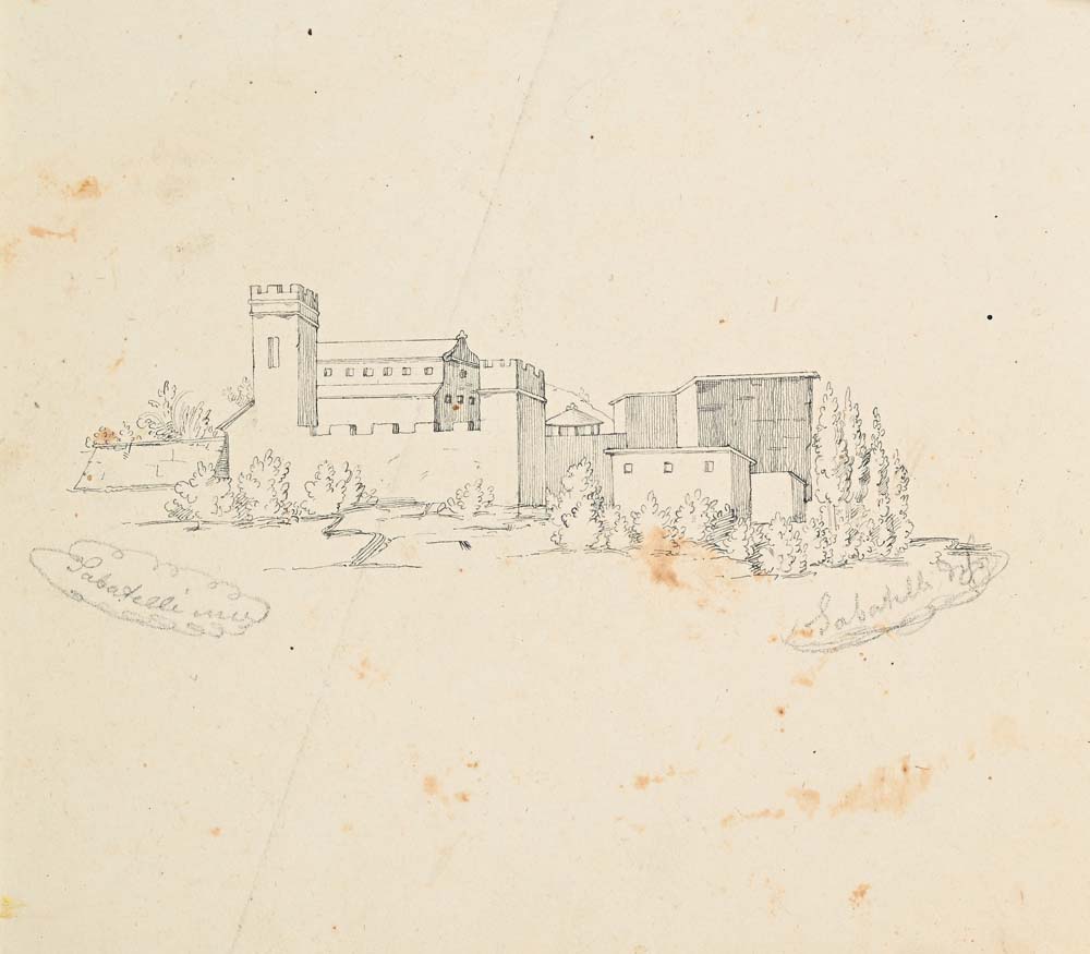 Luigi Sabatelli Studio per incisione raffigurante una città Iscritto in basso a sinistra "Sabatelli inv."