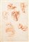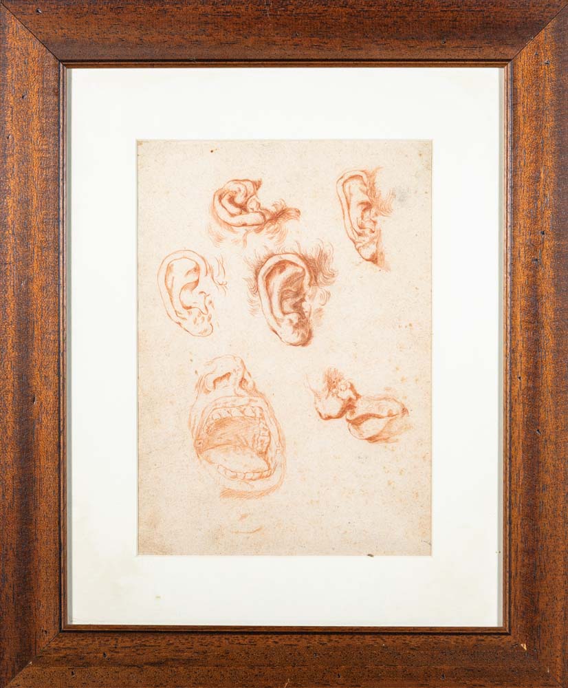 Pittore Accademico degli inizi del XIX secolo Studi di orecchie e bocca Sanguigna su carta mm 265x190 - con cornice cm 46x38