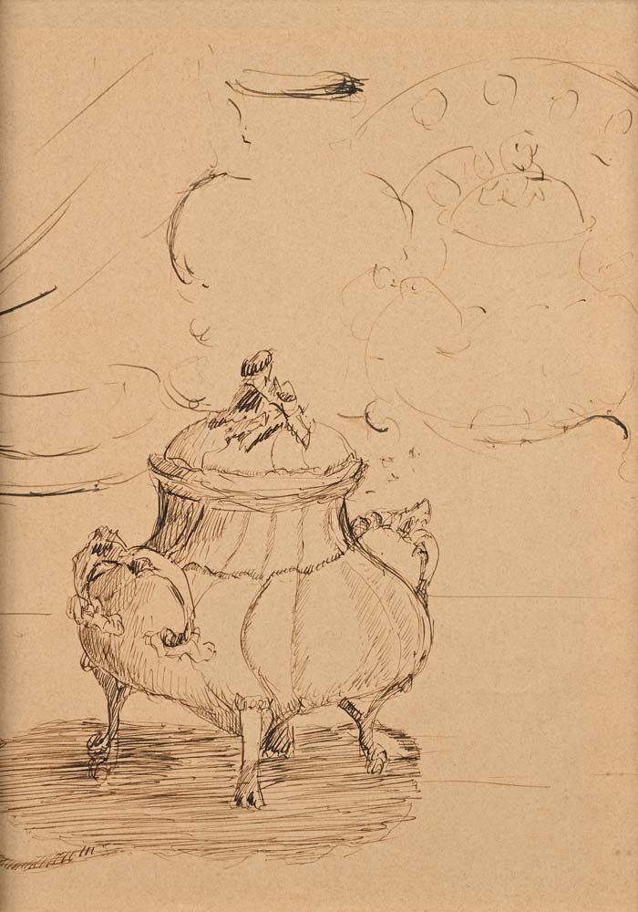 Scuola Italiana del XIX secolo Studio di una zuccheriera china su carta mm...
