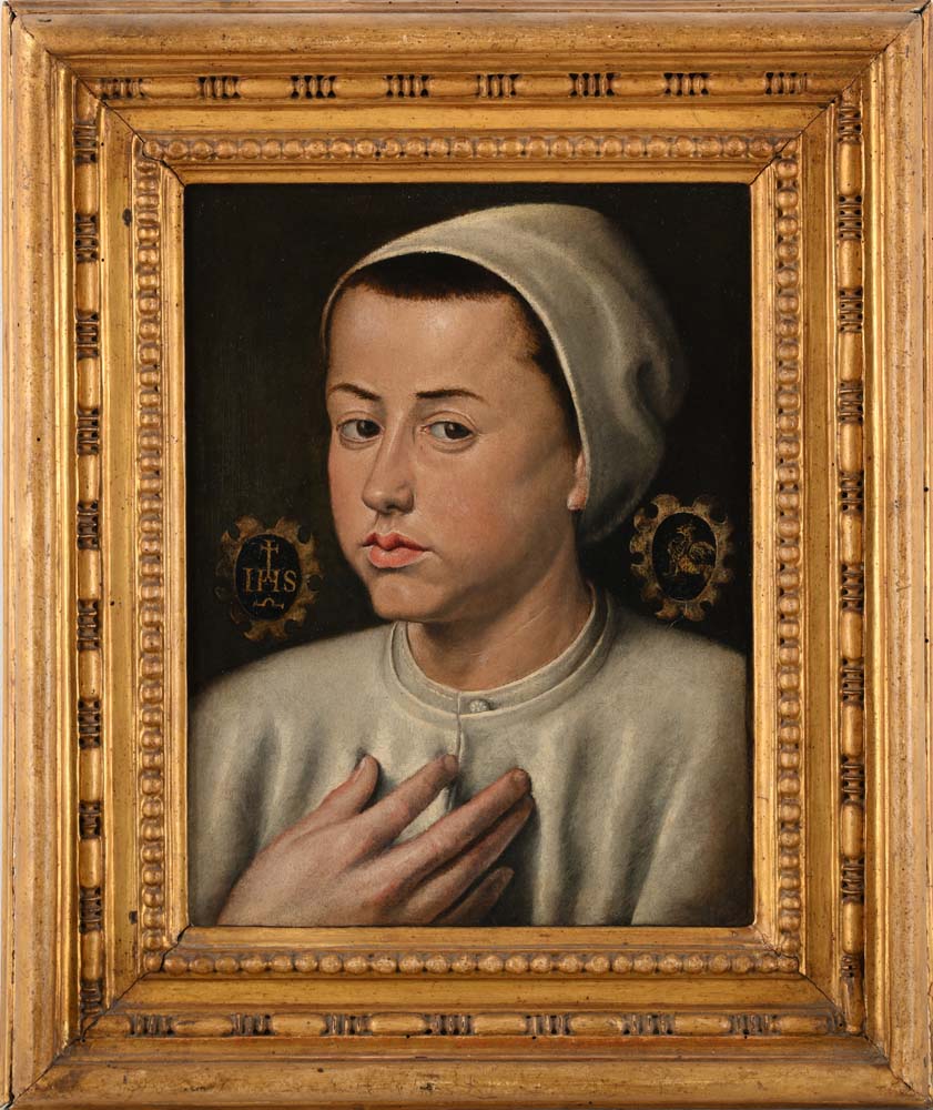 Antiveduto Gramatica (cerchia di) Ritratto di Beato Pietro Borghese L'identità del ritratto è suggerita dalla presenza dello stemma a destra della figura, recante nel campo il drago, che caratterizza la famiglia Borghese.