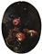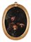 Pittore Napoletano del XVIII secolo Natura morta con funghi e serpente Di formato ovale e dominato da toni intensi e ombrosi, questo affascinante dipinto raffigura una scena di sottobosco in cui natura e mistero si fondono in una composizione di forte suggestione visiva. L’opera, verosimilmente ascrivibile alla scuola napoletana del Settecento, si distingue per l’accurata resa naturalistica e per una teatralità cromatica che richiama la sensibilità barocca del sud Italia. Tra il fogliame fitto e le profondità d’ombra, emerge un grappolo d’uva matura, funghi selvatici e una serpe che si insinua silenziosa tra gli elementi del paesaggio, infondendo alla scena una tensione latente e un senso di vitalità sospesa. La forma sinuosa del serpente, associata al frutto, richiama simbolicamente la sensualità, il desiderio e la natura ambigua dell’attrazione. Il contrasto tra la penombra dominante e i tocchi luminosi di bianco e rosso, che risaltano nei riflessi dell’uva e nelle venature dei funghi, dona all’insieme un vibrante dinamismo visivo, guidando lo sguardo lungo un percorso quasi simbolico. La composizione ovale si configura come una sorta di finestra aperta sulla natura, ma anche come metafora della caducità e della seduzione nascosta nella bellezza del mondo naturale. olio su tela cm 60x45 - con cornice cm 73x57