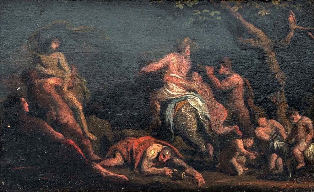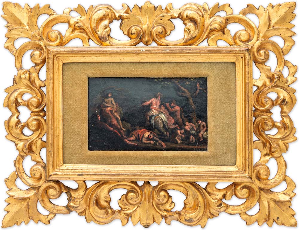 Pittore del XVIII secolo Il ratto delle Sabine Olio su carta cm 7,5x12 - con...