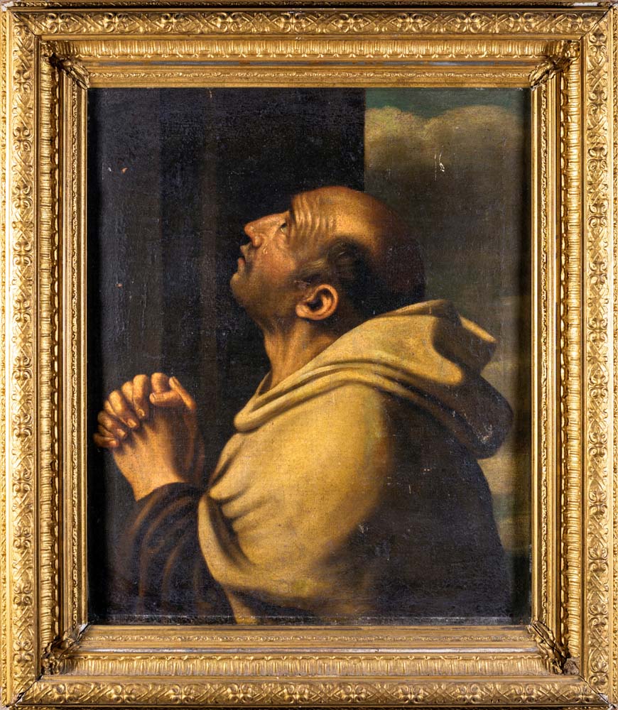 Lotto 199 | Pittore del XVII secolo Monaco Cappuccino in preghiera olio su tela cm 62x52...